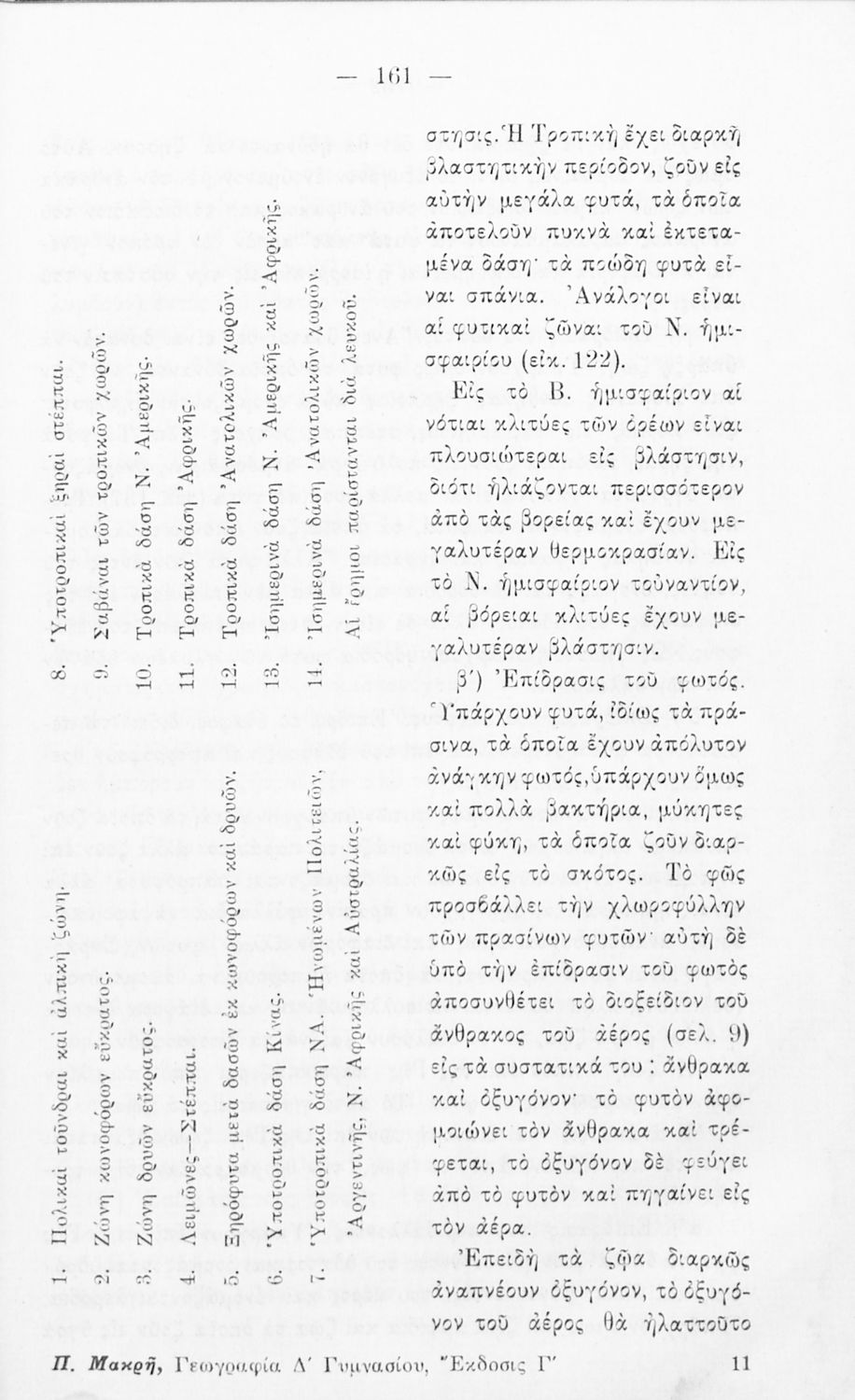 Σχολικό εγχειρίδιο Γεωγραφίας Δ΄ Γυμνασίου που περιλαμβάνει στοιχεία ιστορικής γεωλογίας, και φυσικής και μαθηματικής γεωγραφίας και εστιάζει στη βιογεωγραφία και του κλίμα της Ελλάδας.