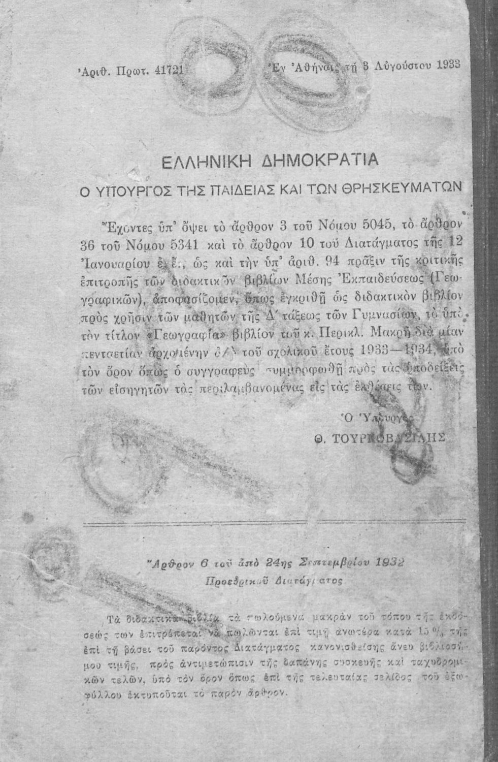 Υπουργική απόφαση / Σύμβαση: 41721/3-8-1933