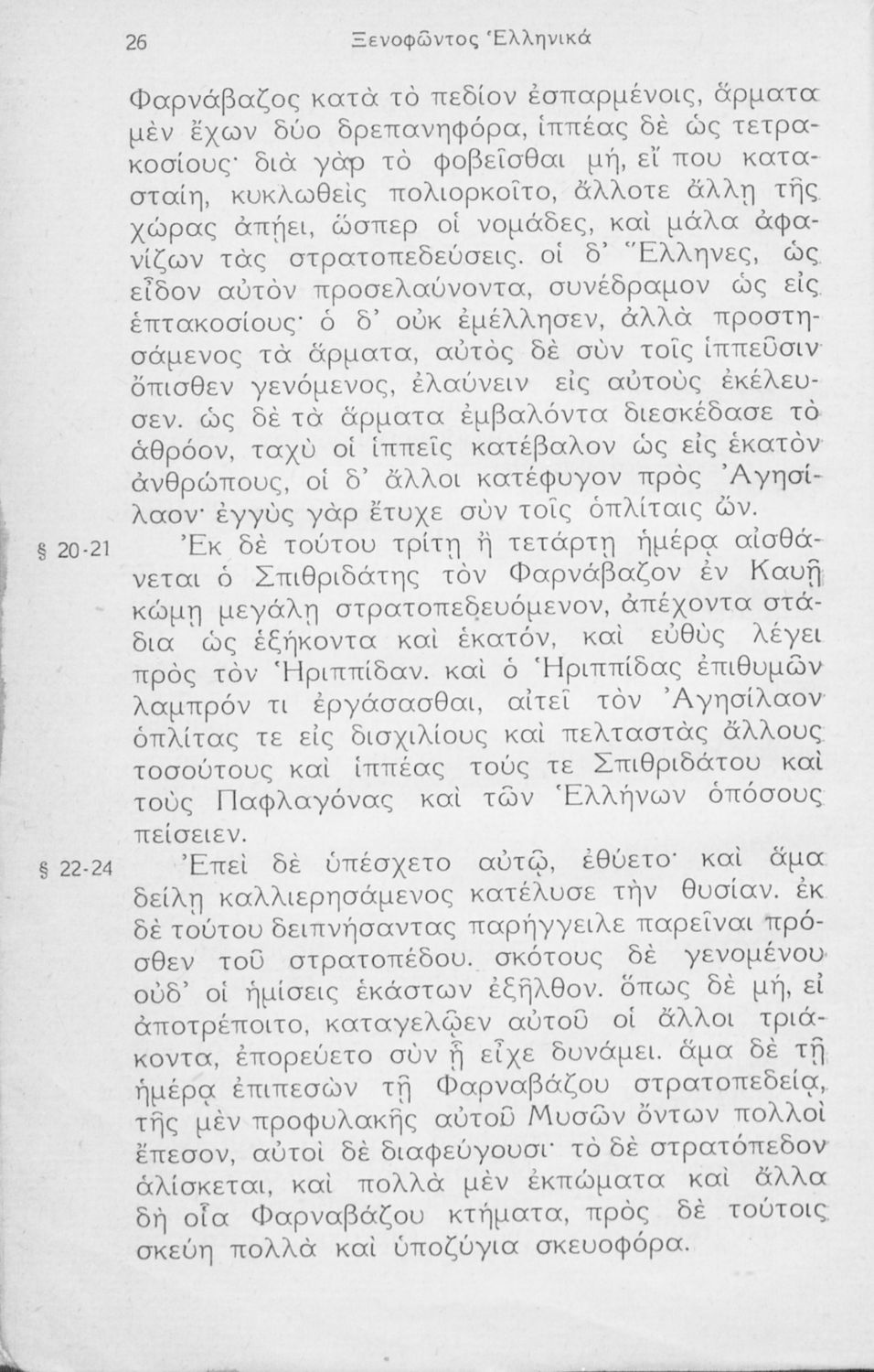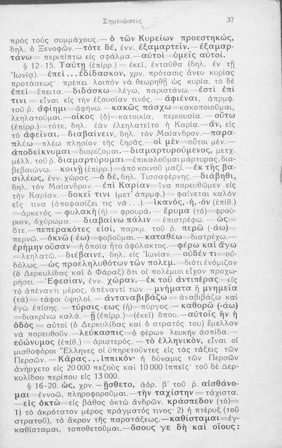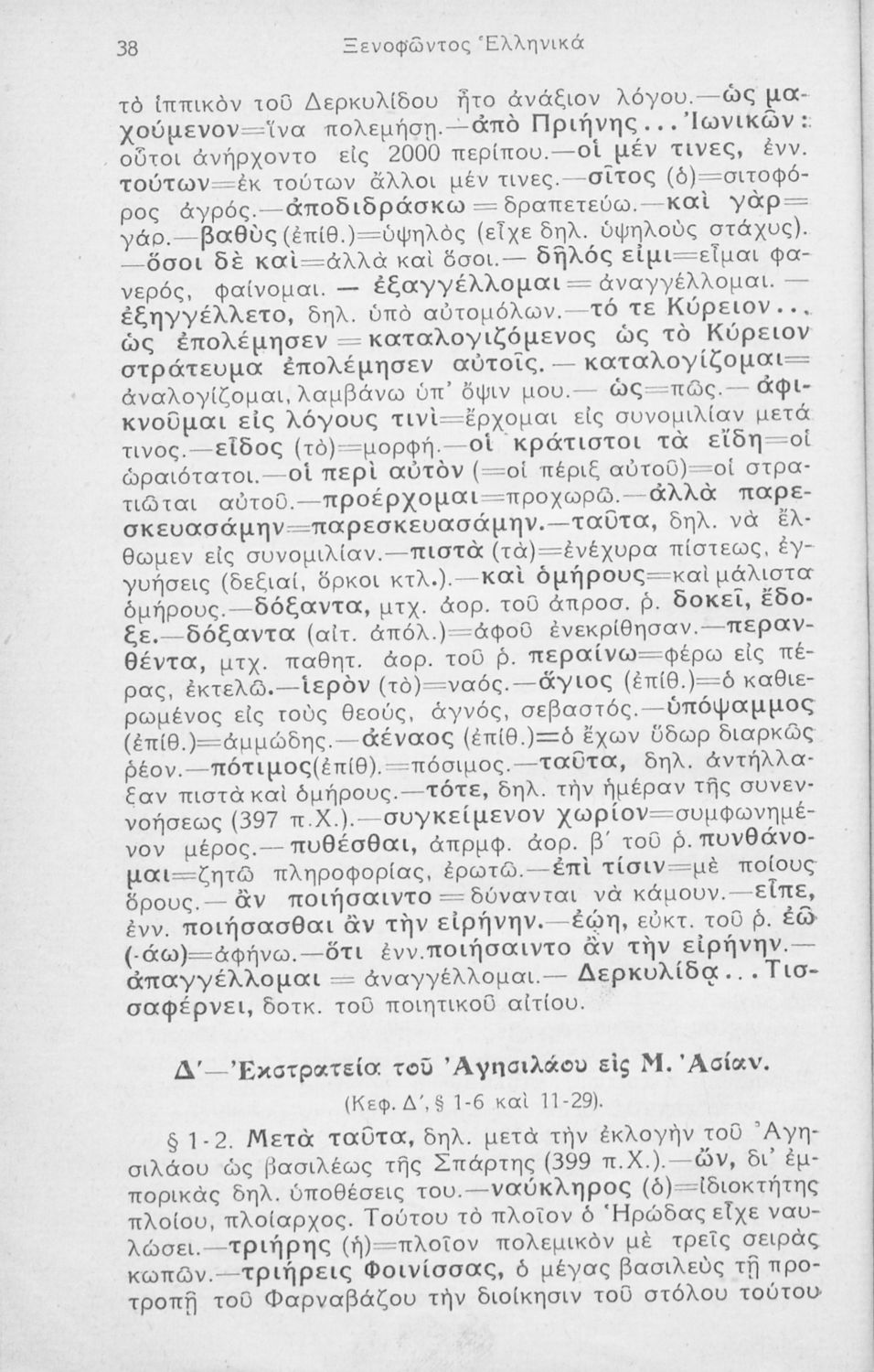 Σχολικό εγχειρίδιο Αρχαίων Ελληνικών για τη Β΄ Γυμνασίου που περιλαμβάνει αποσπάσματα από το III και IV βιβλίο των Ελληνικών του Ξενοφώντα και ετυμολογικές σημειώσεις