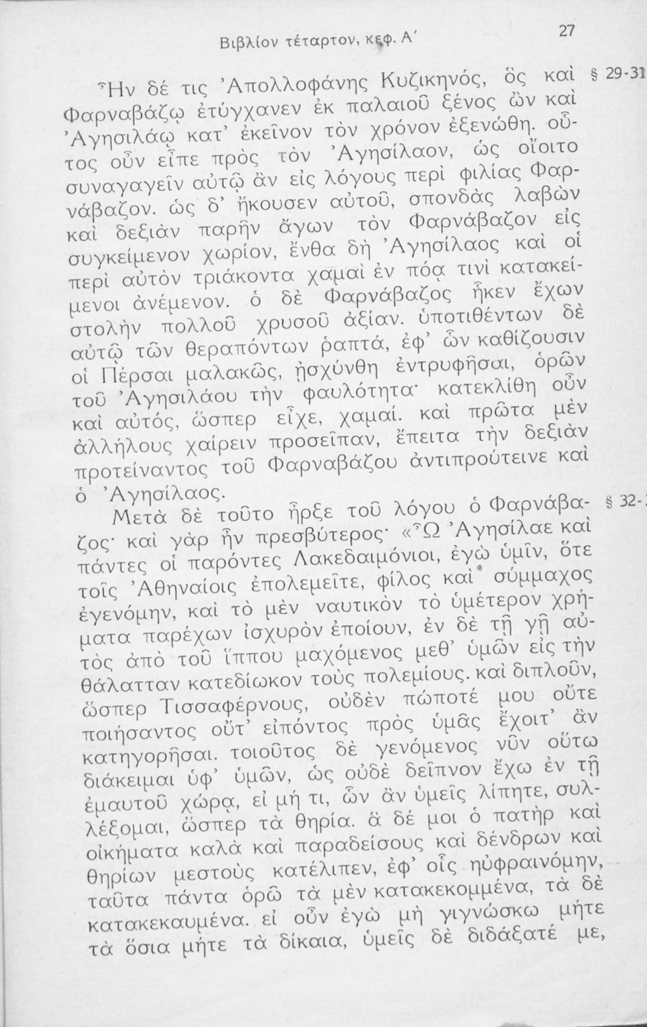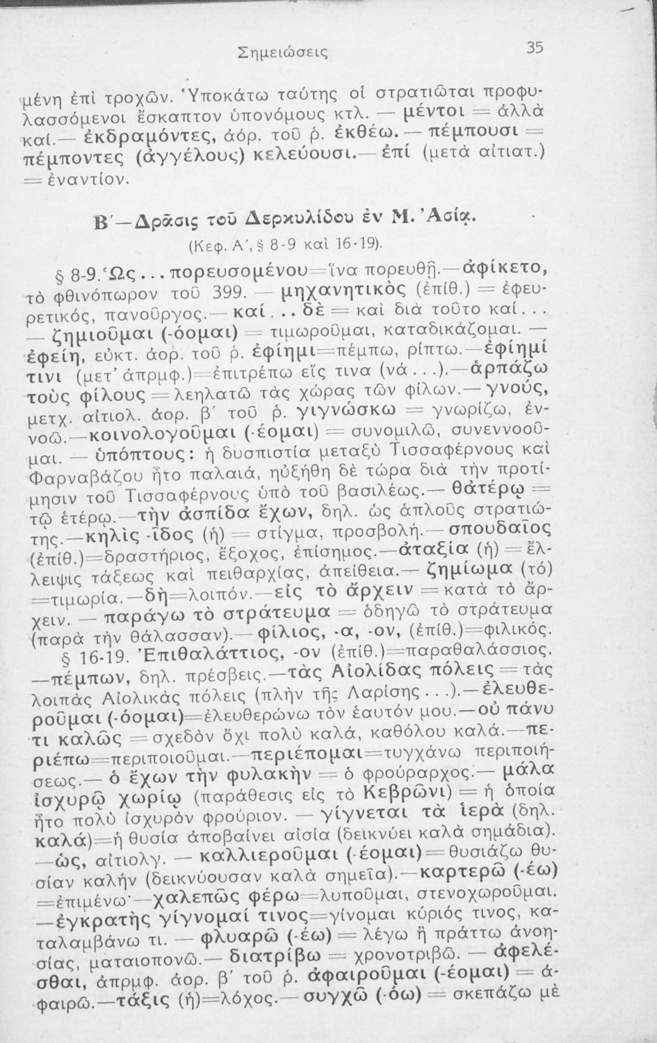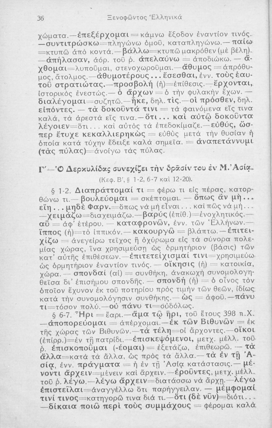 Σχολικό εγχειρίδιο Αρχαίων Ελληνικών για τη Β΄ Γυμνασίου που περιλαμβάνει αποσπάσματα από το III και IV βιβλίο των Ελληνικών του Ξενοφώντα και ετυμολογικές σημειώσεις