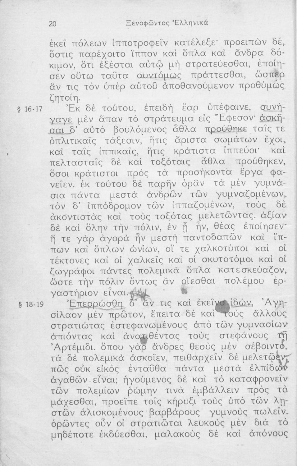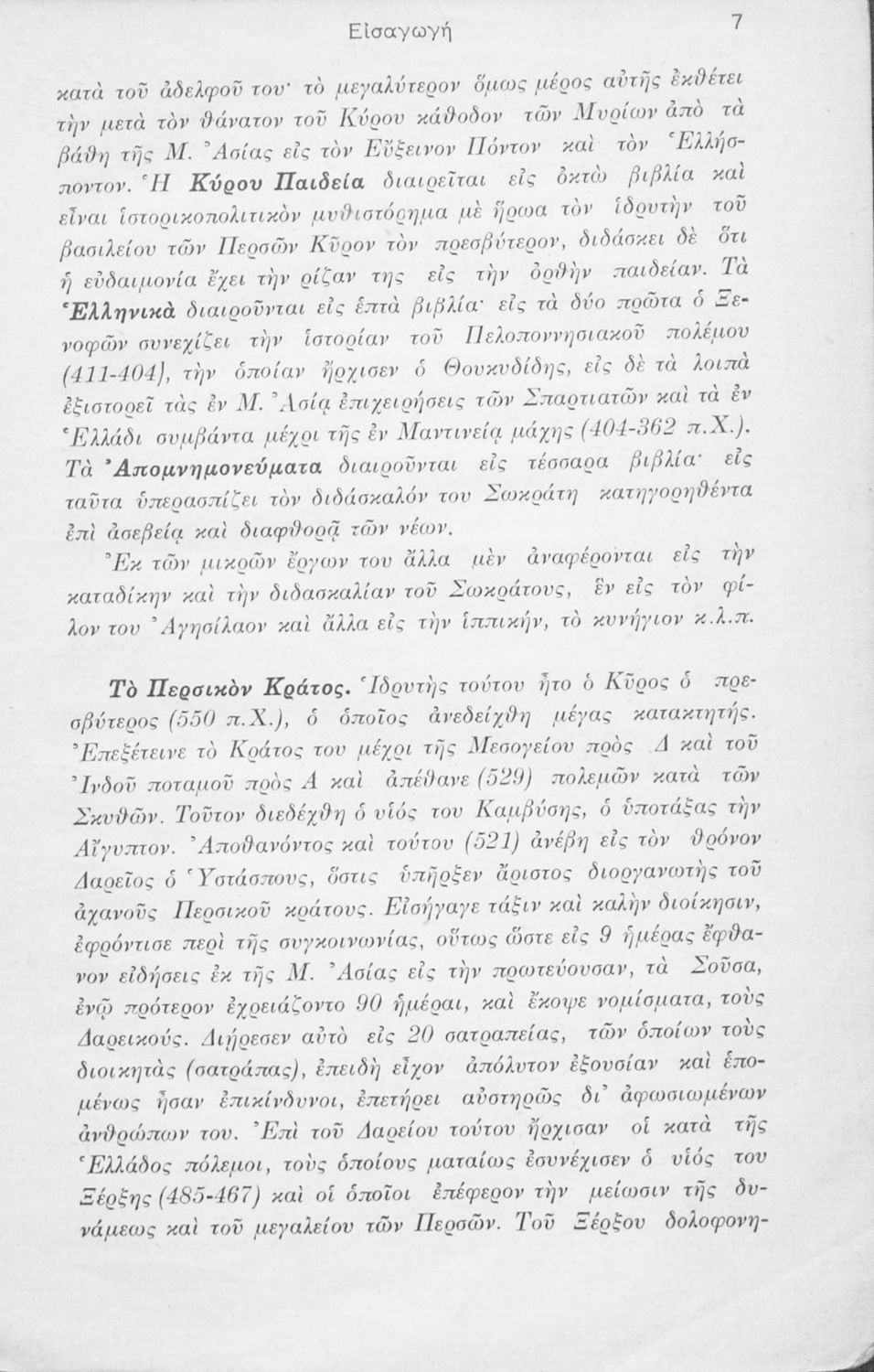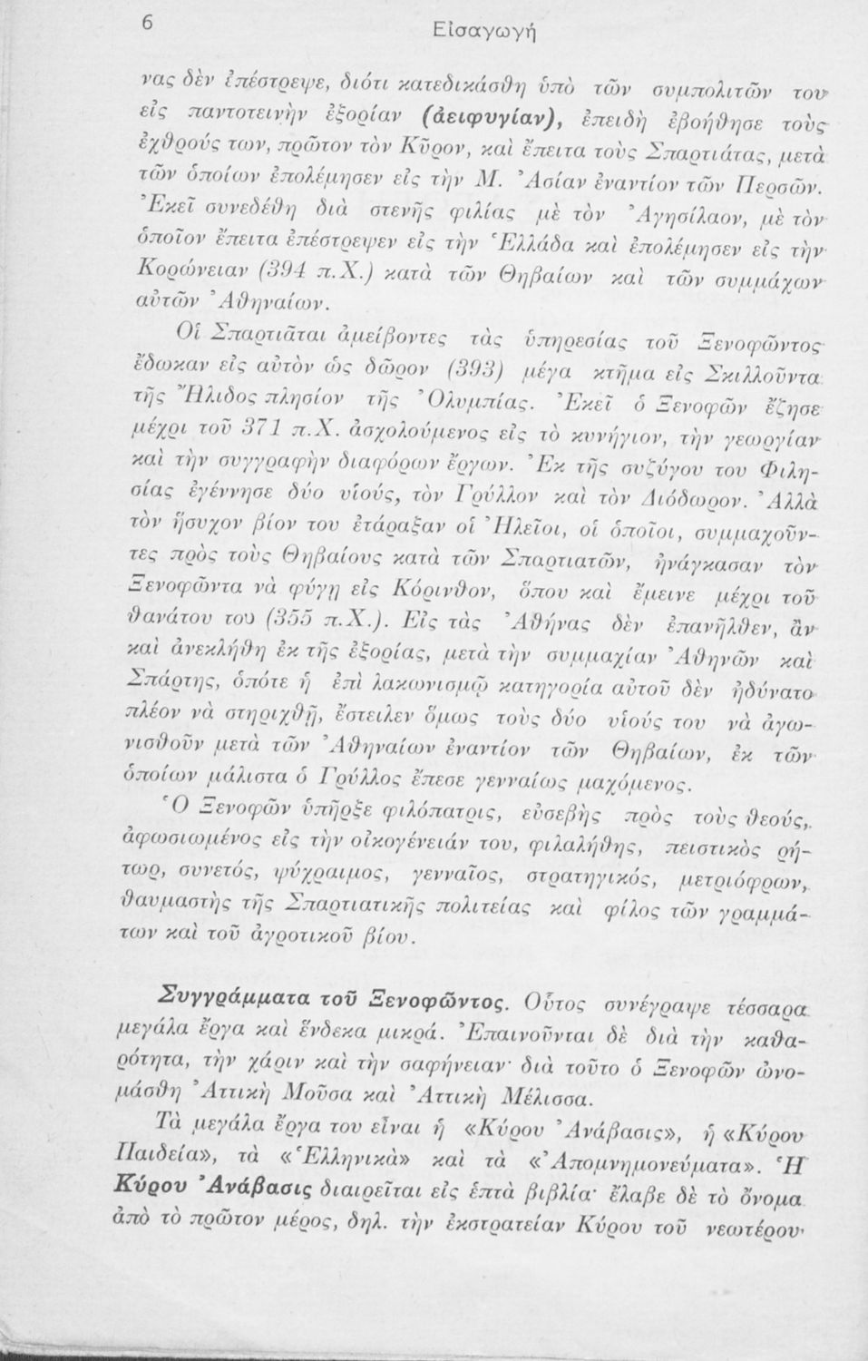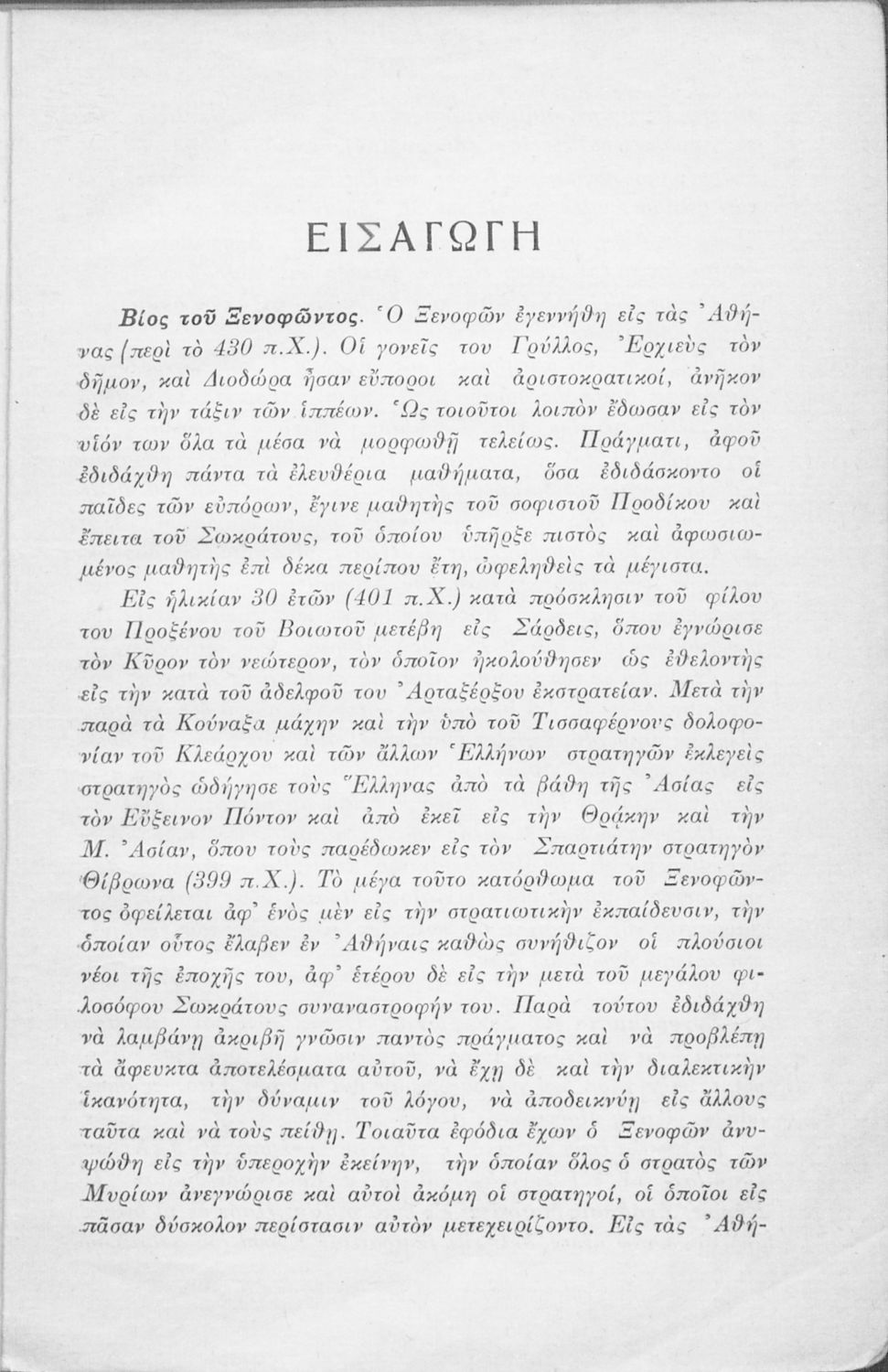 Σχολικό εγχειρίδιο Αρχαίων Ελληνικών για τη Β΄ Γυμνασίου που περιλαμβάνει σύντομο βιογραφικό σημείωμα του Ξενοφώντα, εισαγωγή στο έργο, κείμενο και ετυμολογικές σημειώσεις.