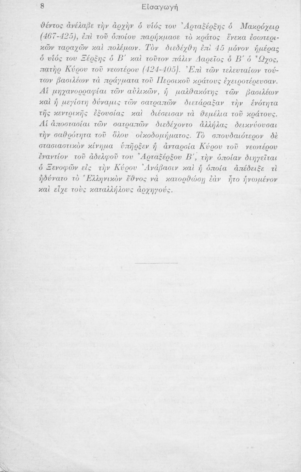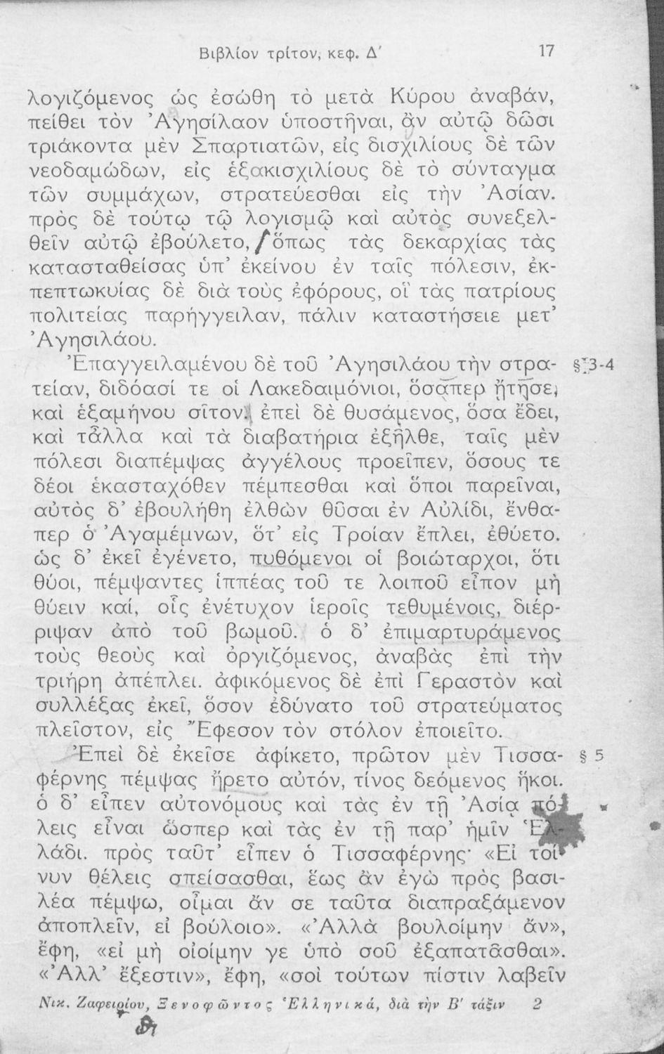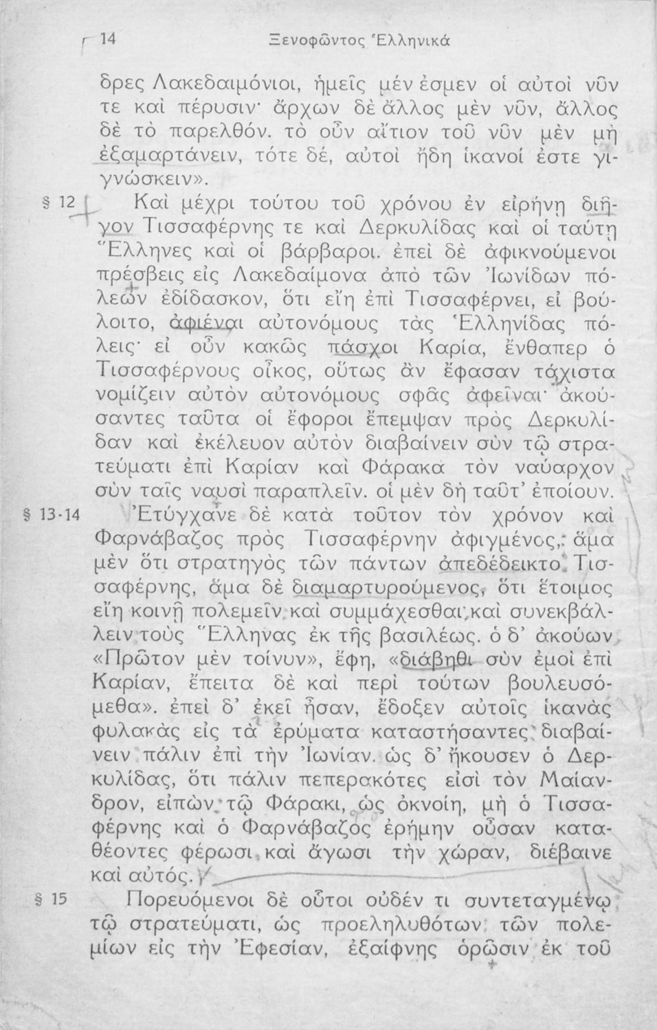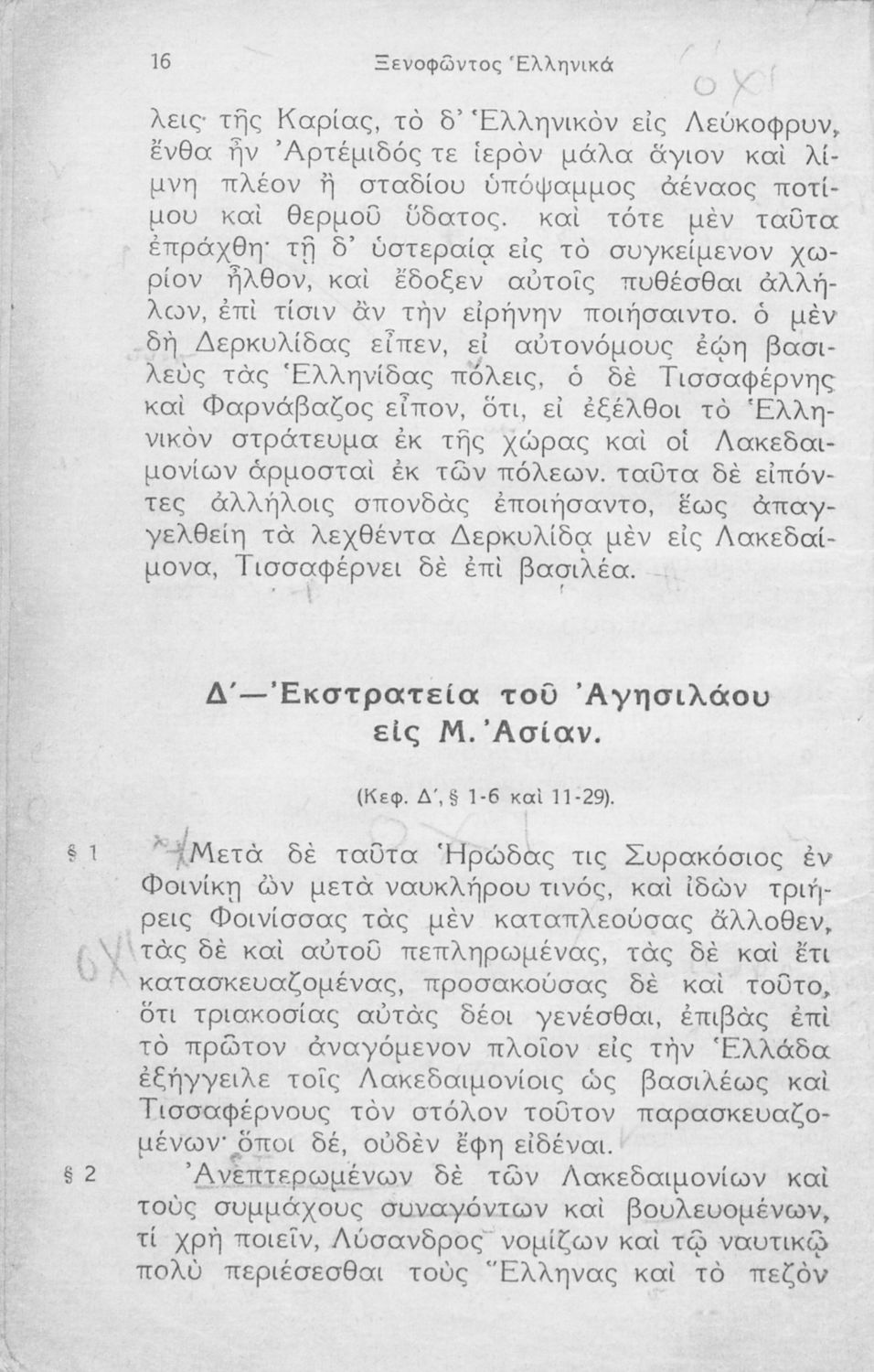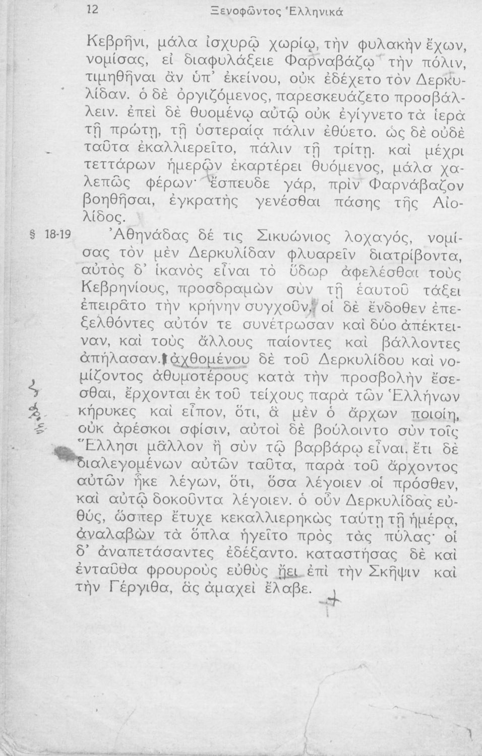 Σχολικό εγχειρίδιο Αρχαίων Ελληνικών για τη Β΄ Γυμνασίου που περιλαμβάνει σύντομο βιογραφικό σημείωμα του Ξενοφώντα, εισαγωγή στο έργο, κείμενο και ετυμολογικές σημειώσεις.