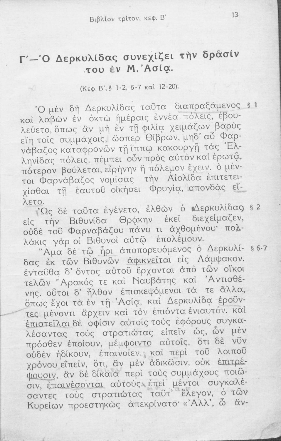Βαθμίδα εκπαίδευσης: Δευτεροβάθμια Τάξη: Β' Γυμνασίου / Πρακτικό Λύκειο Μάθημα: Αρχαία Ελληνικά Γλώσσα: Καθαρεύουσα Παρουσίαση περιεχομένου: Σχολικό εγχειρίδιο Αρχαίων Ελληνικών για τη Β΄ Γυμνασίου που περιλαμβάνει σύντομο βιογραφικό σημείωμα του Ξενοφώντα, εισαγωγή στο έργο, κείμενο και ετυμολογικές σημειώσεις. |