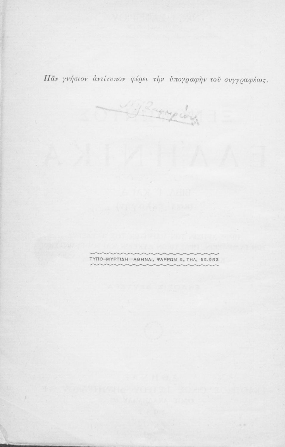 Εκδότης: Πέτρος Δημητράκος Έτος έκδοσης: 1937 Τόπος έκδοσης: Αθήνα Έκδοση: 2η |