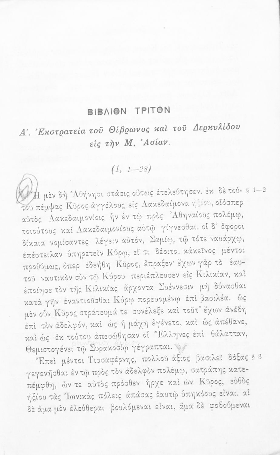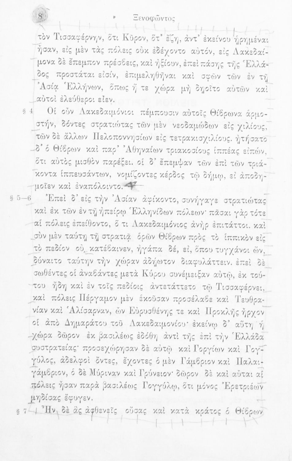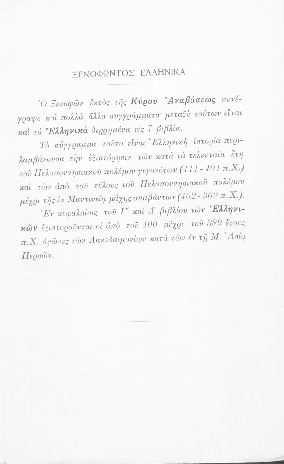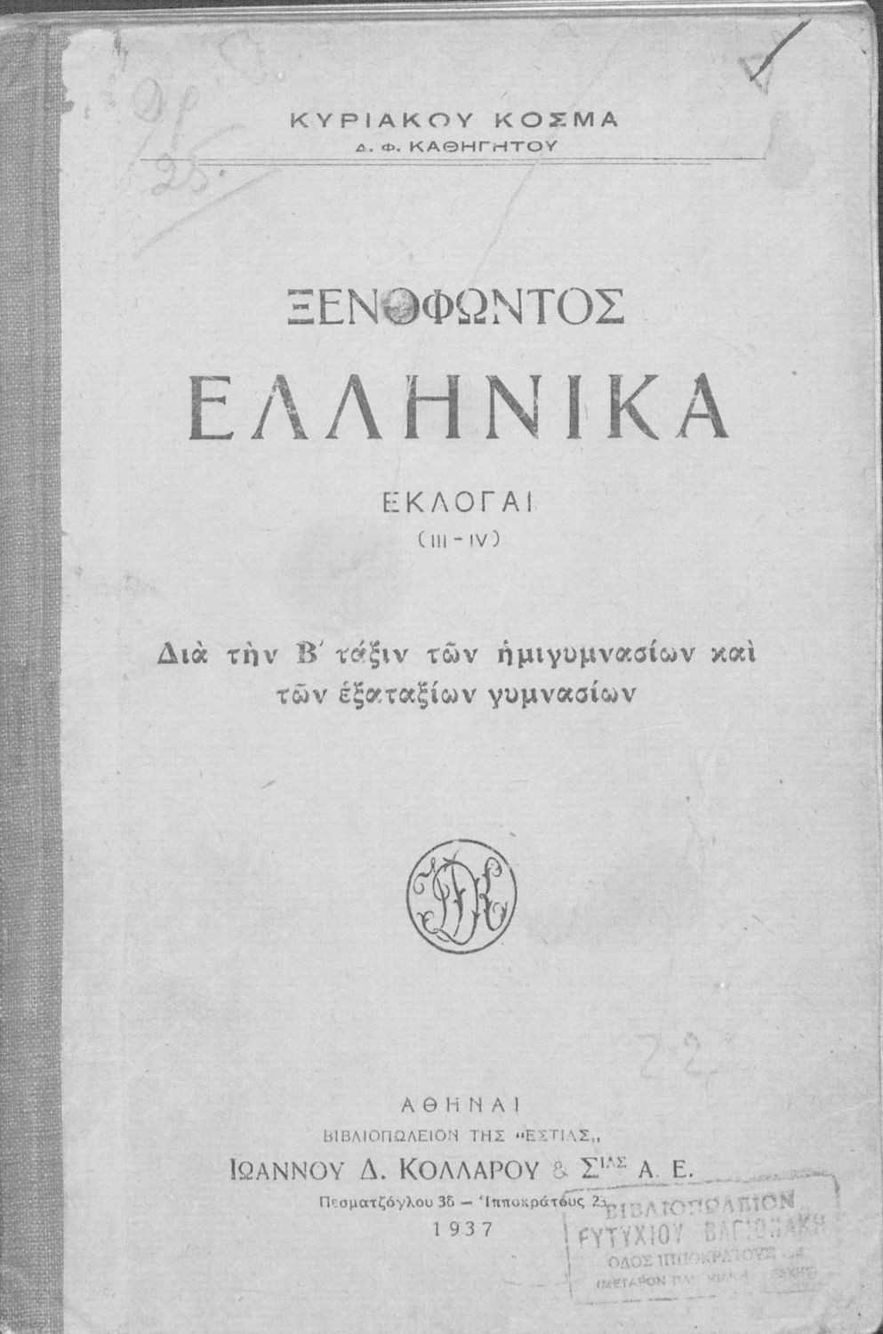 Σχολικό εγχειρίδιο Αρχαίων Ελληνικών για τη Β΄ Γυμνασίου που περιλαμβάνει αποσπάσματα από το III και IV βιβλίο των Ελληνικών του Ξενοφώντα και ετυμολογικές σημειώσεις