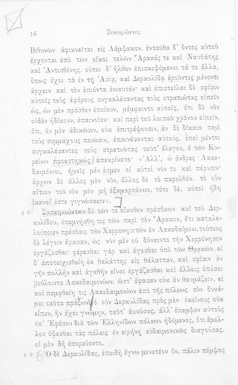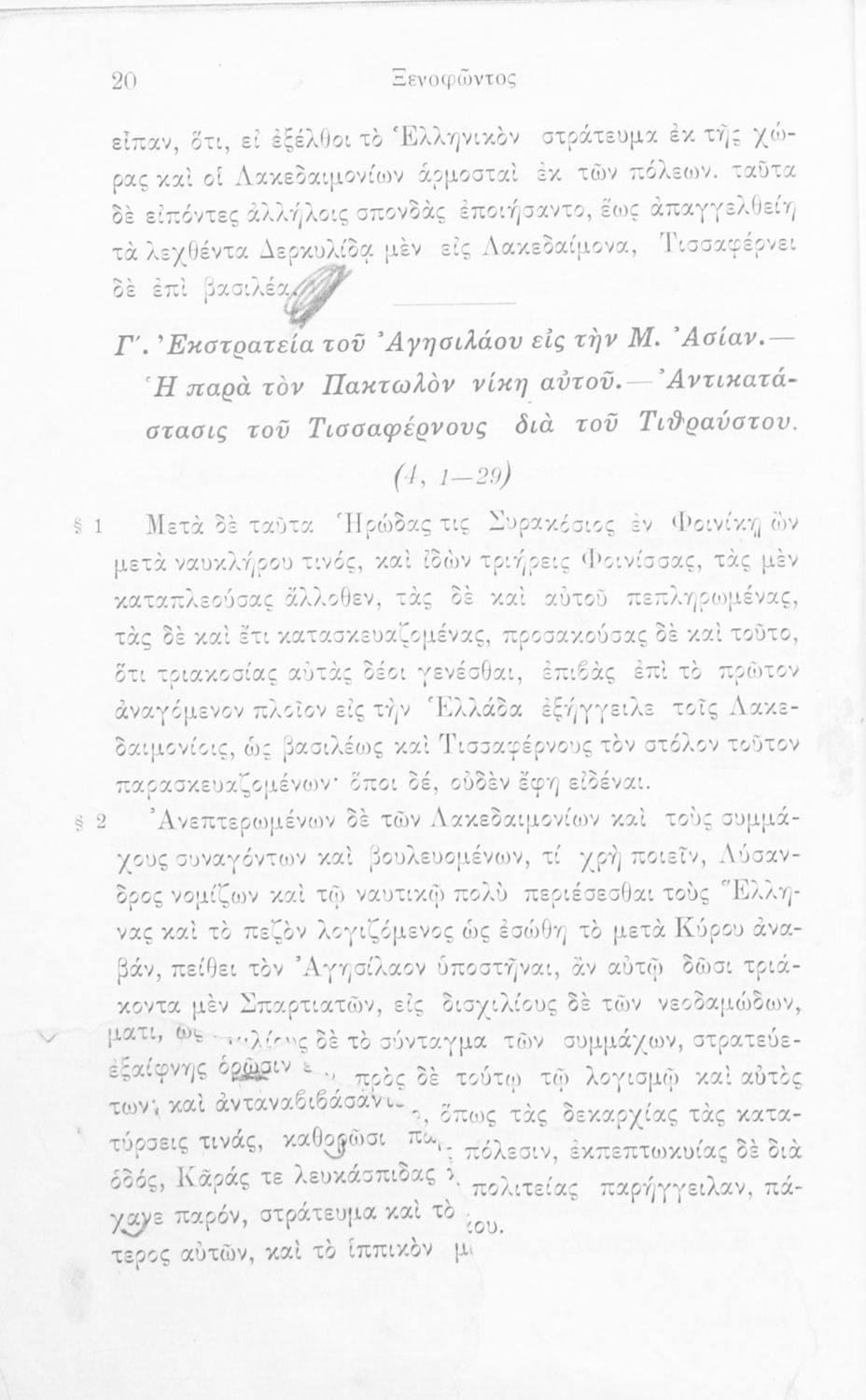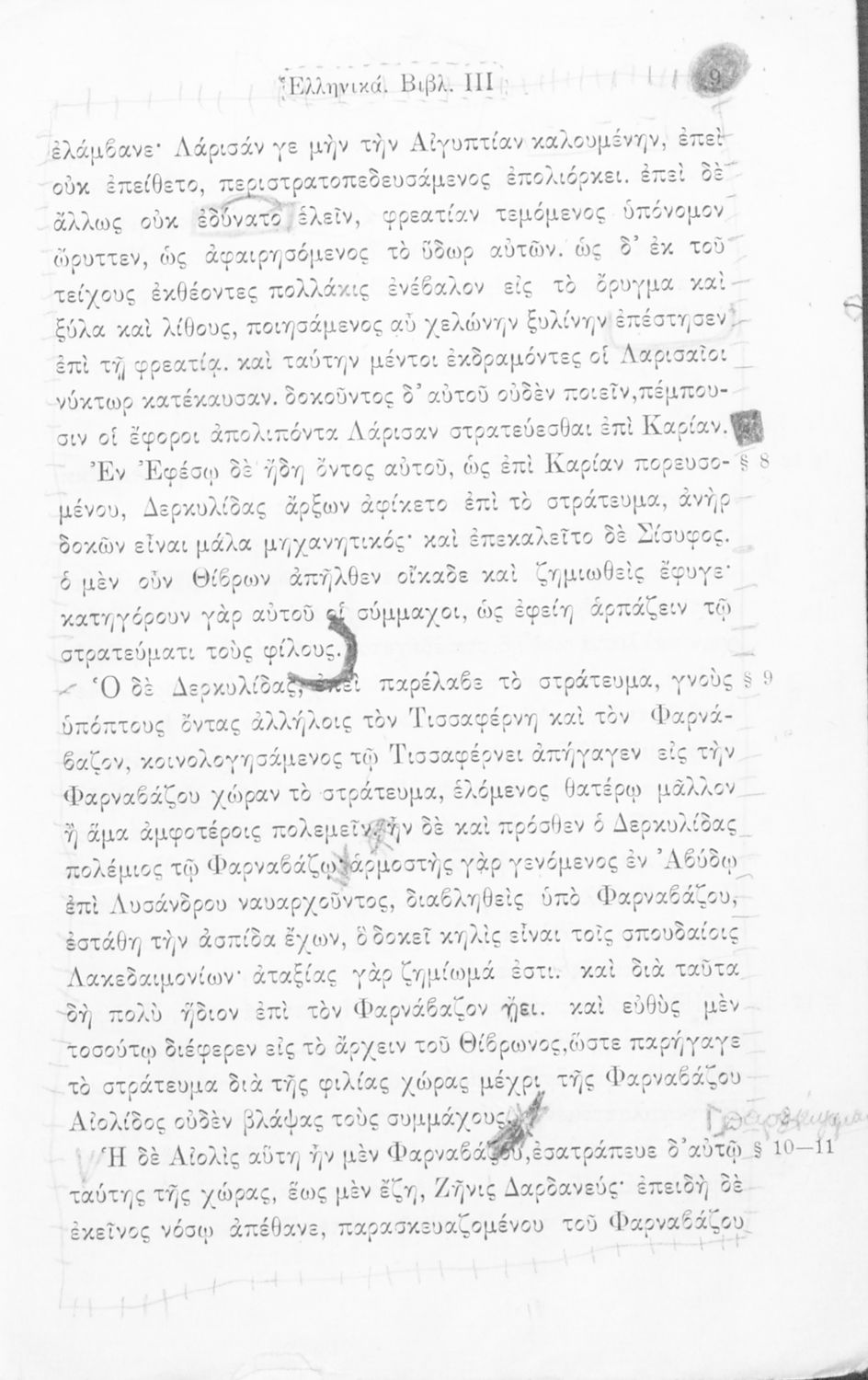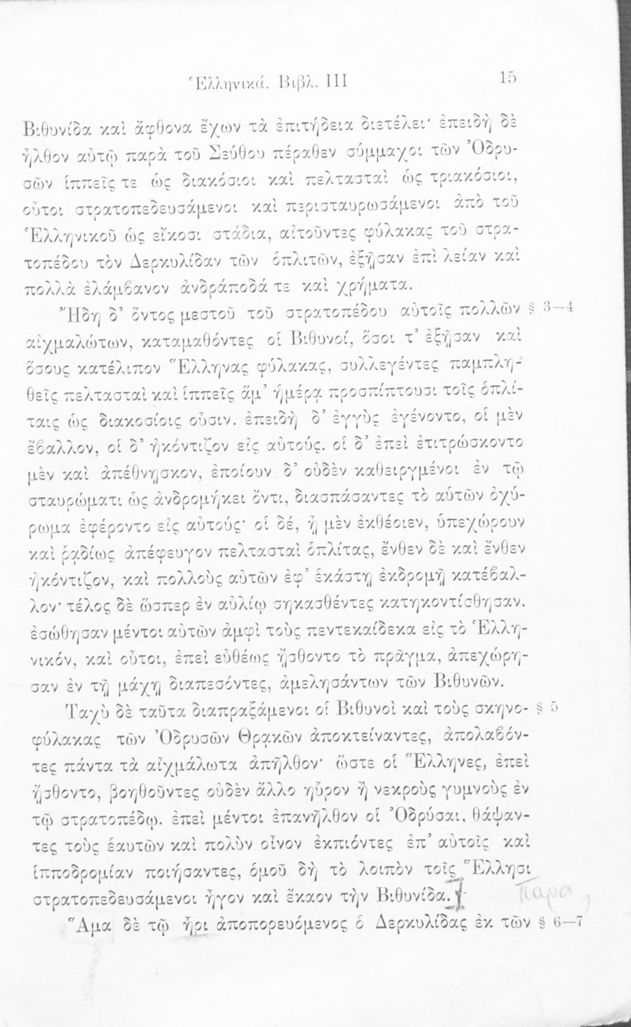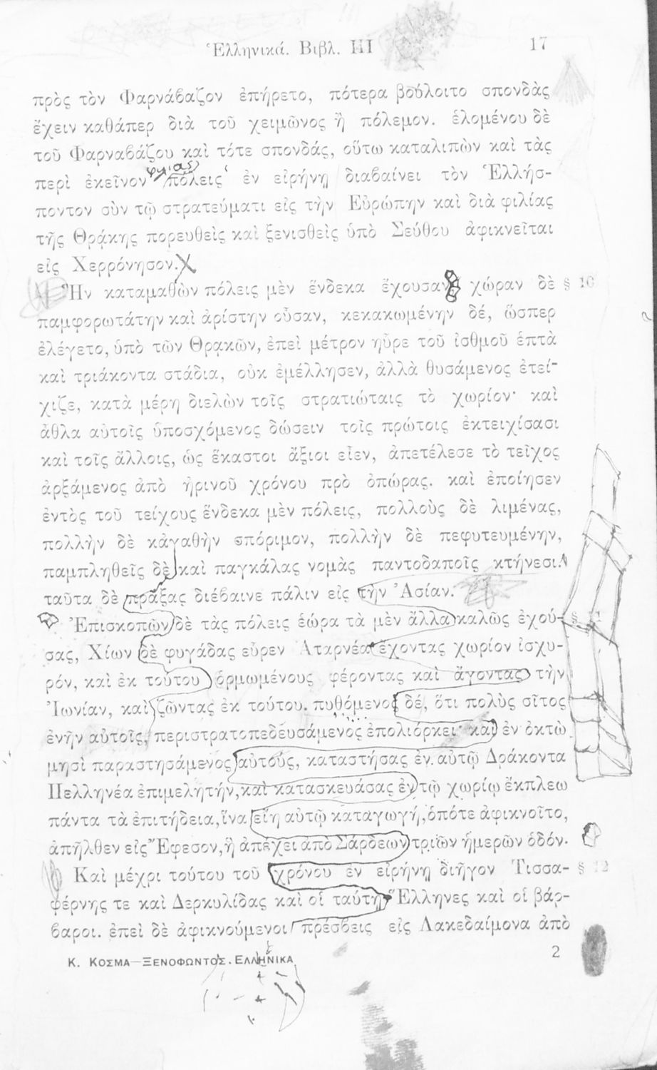 Σχολικό εγχειρίδιο Αρχαίων Ελληνικών για τη Β΄ Γυμνασίου που περιλαμβάνει αποσπάσματα από το III και IV βιβλίο των Ελληνικών του Ξενοφώντα και ετυμολογικές σημειώσεις
