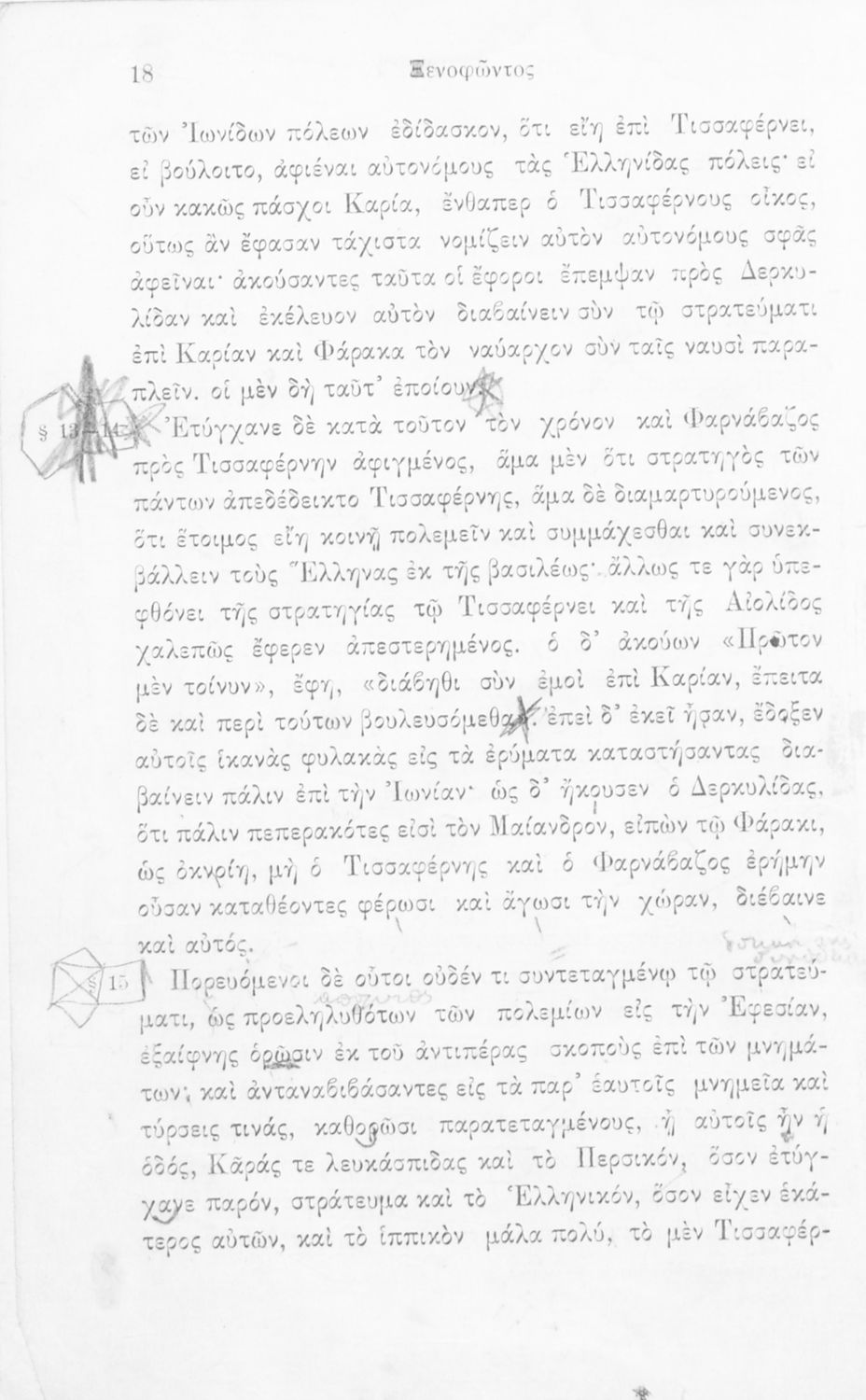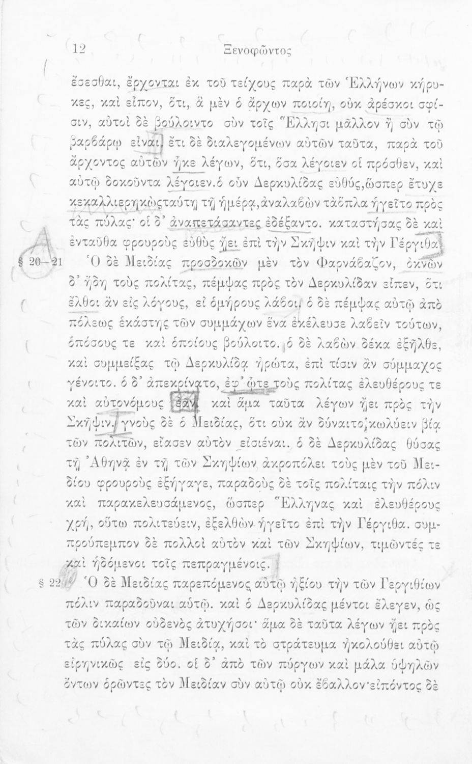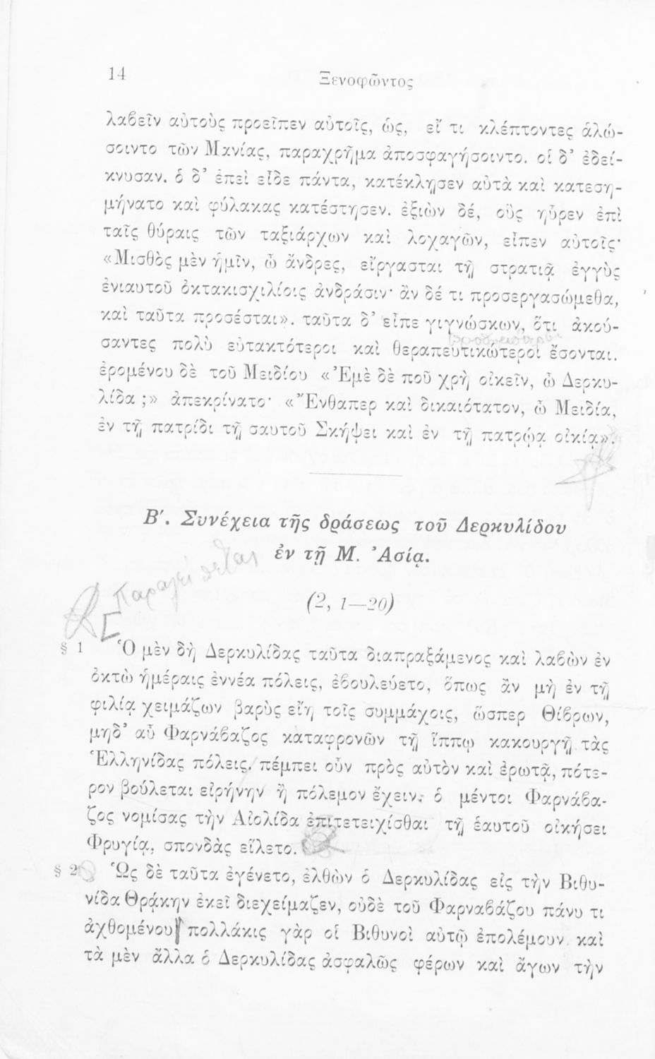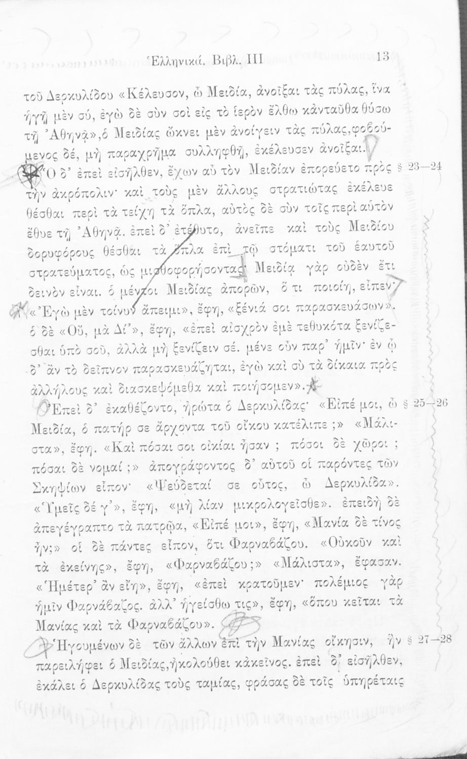 Σχολικό εγχειρίδιο Αρχαίων Ελληνικών για τη Β΄ Γυμνασίου που περιλαμβάνει αποσπάσματα από το III και IV βιβλίο των Ελληνικών του Ξενοφώντα και ετυμολογικές σημειώσεις
