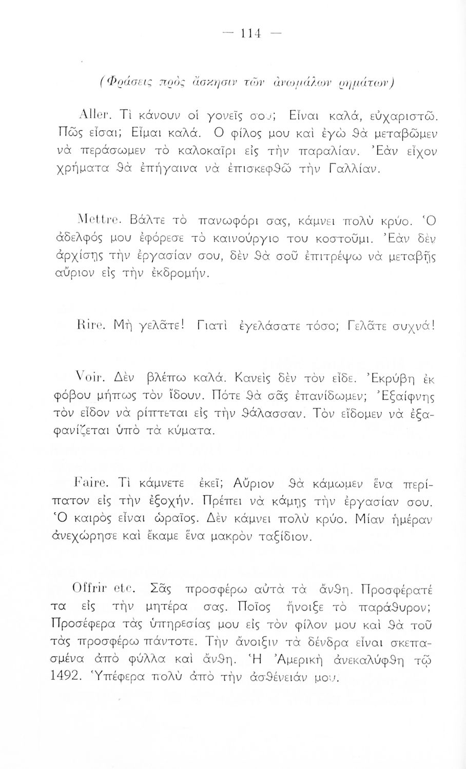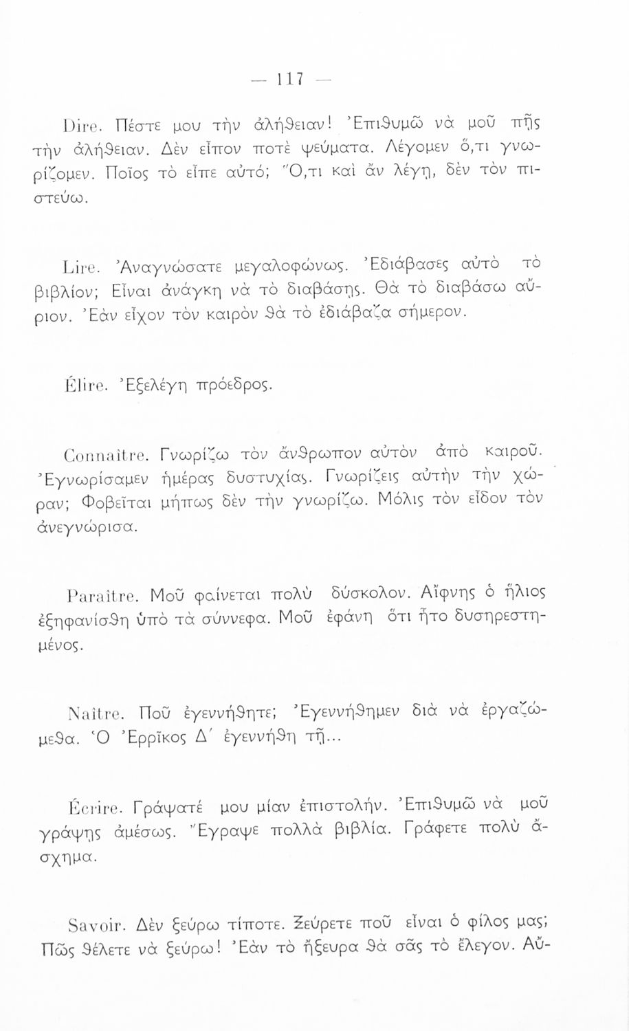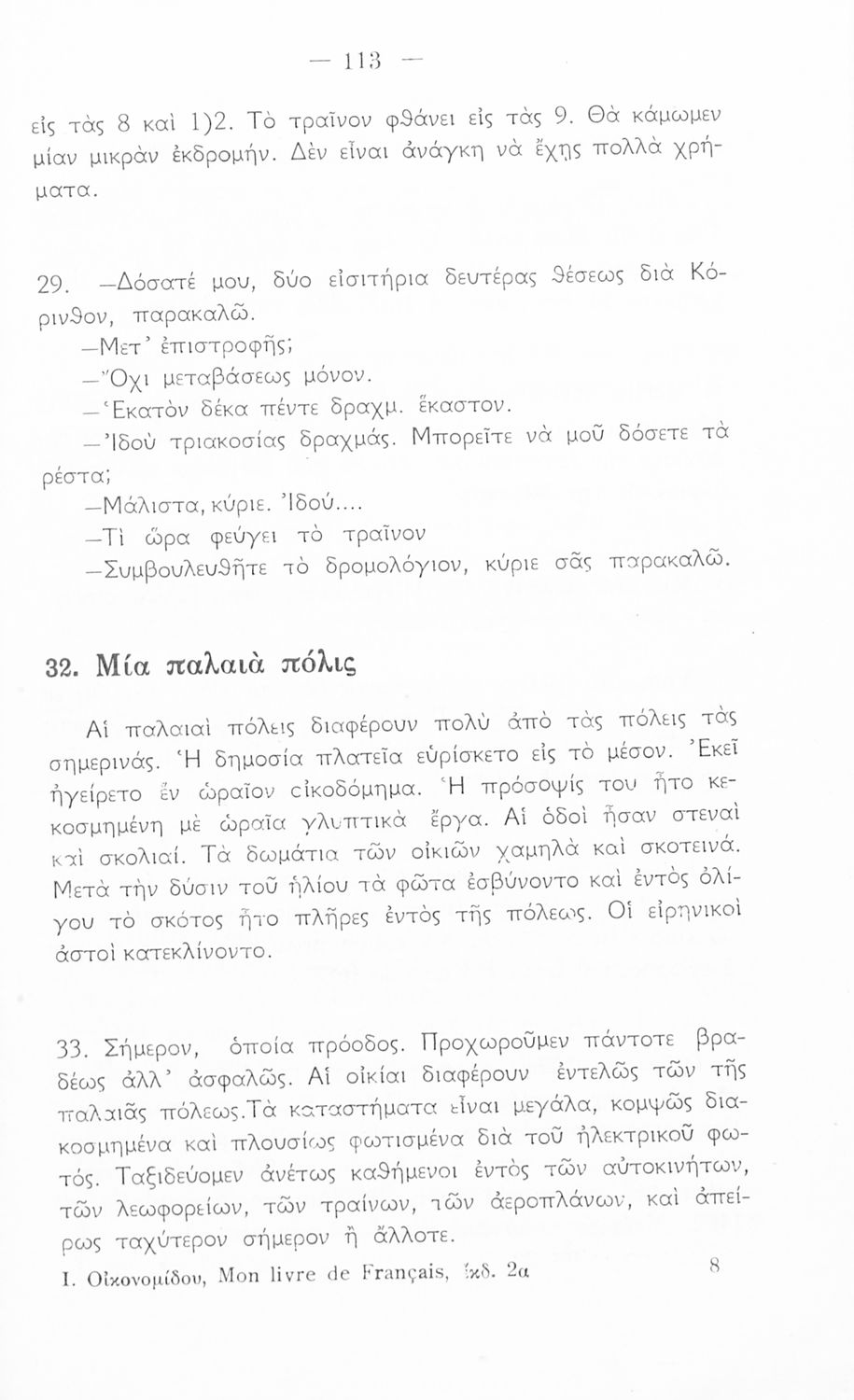 Κωδικός αναγνώρισης: 02-01290 Τίτλος: Mon livre de francais, Βιβλίον 3ον διά την Δ΄ τάξιν του Γυμνασίου (Τρίτον έτος της διδασκαλίας των Γαλλικών) Συγγραφέας: Ι. Οικονομίδης Εικονογράφος: Σπ. Βυτωρόπουλος Μέγεθος και υπόστρωμα: Σχολικό εγχειρίδιο, σκληρό εξώφυλλο, 148 σελίδες. Σκίτσα (ασπρόμαυρα). |