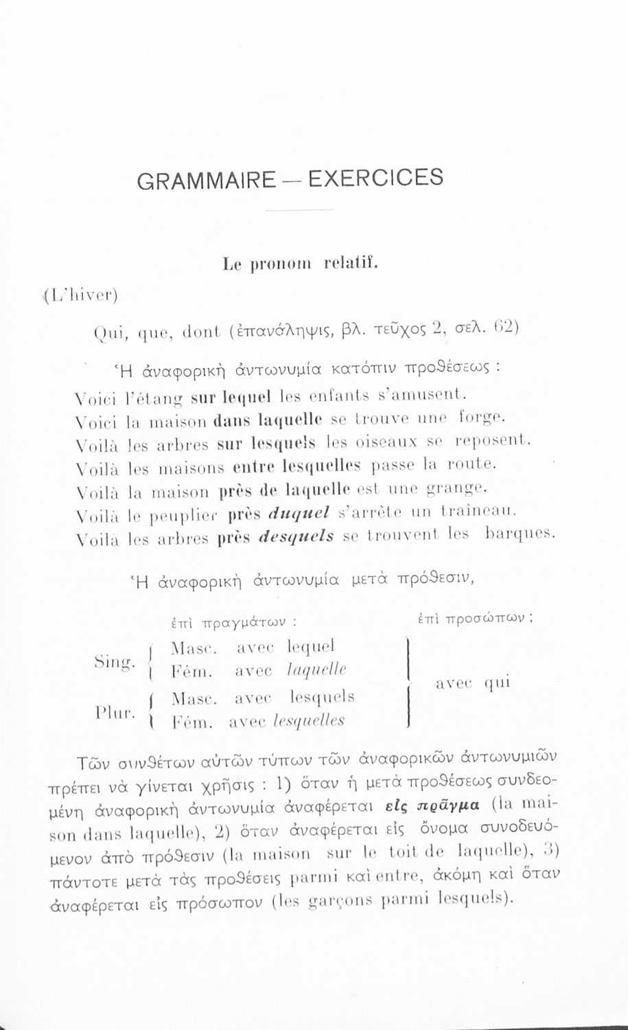 Κωδικός αναγνώρισης: 02-01290 Τίτλος: Mon livre de francais, Βιβλίον 3ον διά την Δ΄ τάξιν του Γυμνασίου (Τρίτον έτος της διδασκαλίας των Γαλλικών) Συγγραφέας: Ι. Οικονομίδης Εικονογράφος: Σπ. Βυτωρόπουλος Μέγεθος και υπόστρωμα: Σχολικό εγχειρίδιο, σκληρό εξώφυλλο, 148 σελίδες. Σκίτσα (ασπρόμαυρα). |