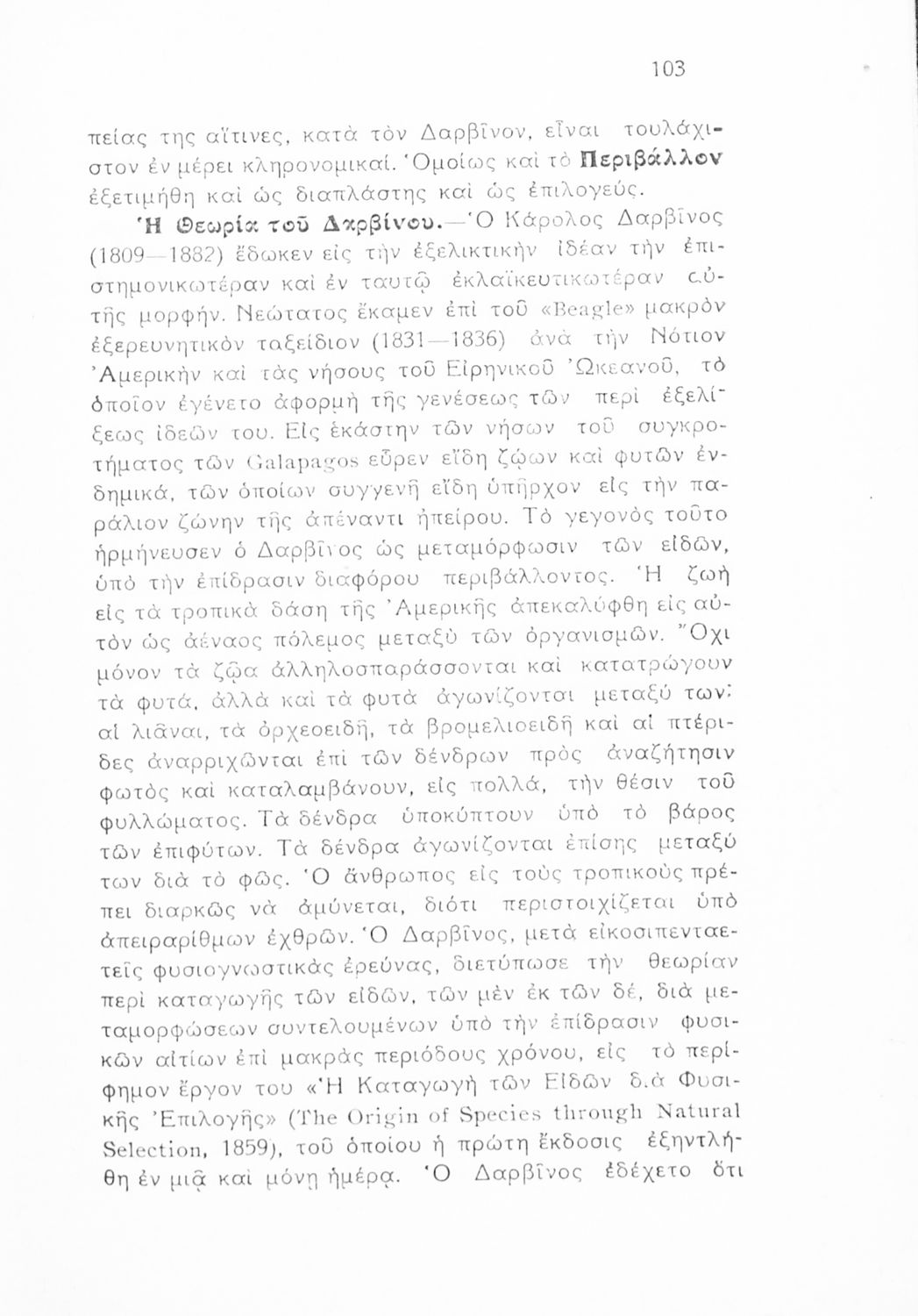 Βαθμίδα εκπαίδευσης: Δευτεροβάθμια Μάθημα: Βιολογία Γλώσσα: Απλή καθαρεύουσα Παρουσίαση περιεχομένου: Μαθητικό βοήθημα Βιολογίας που εστιάζει στην εμβρυολογία, την κληρονομικότητα και την εξέλιξη των ειδών. |