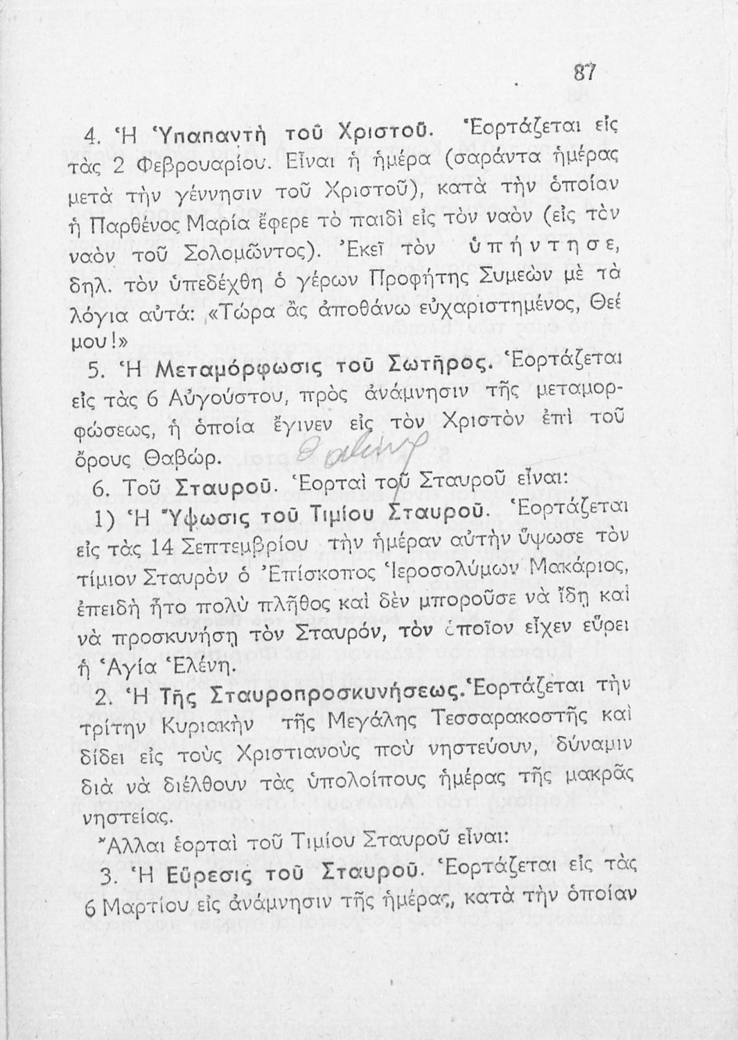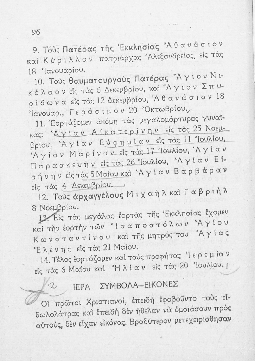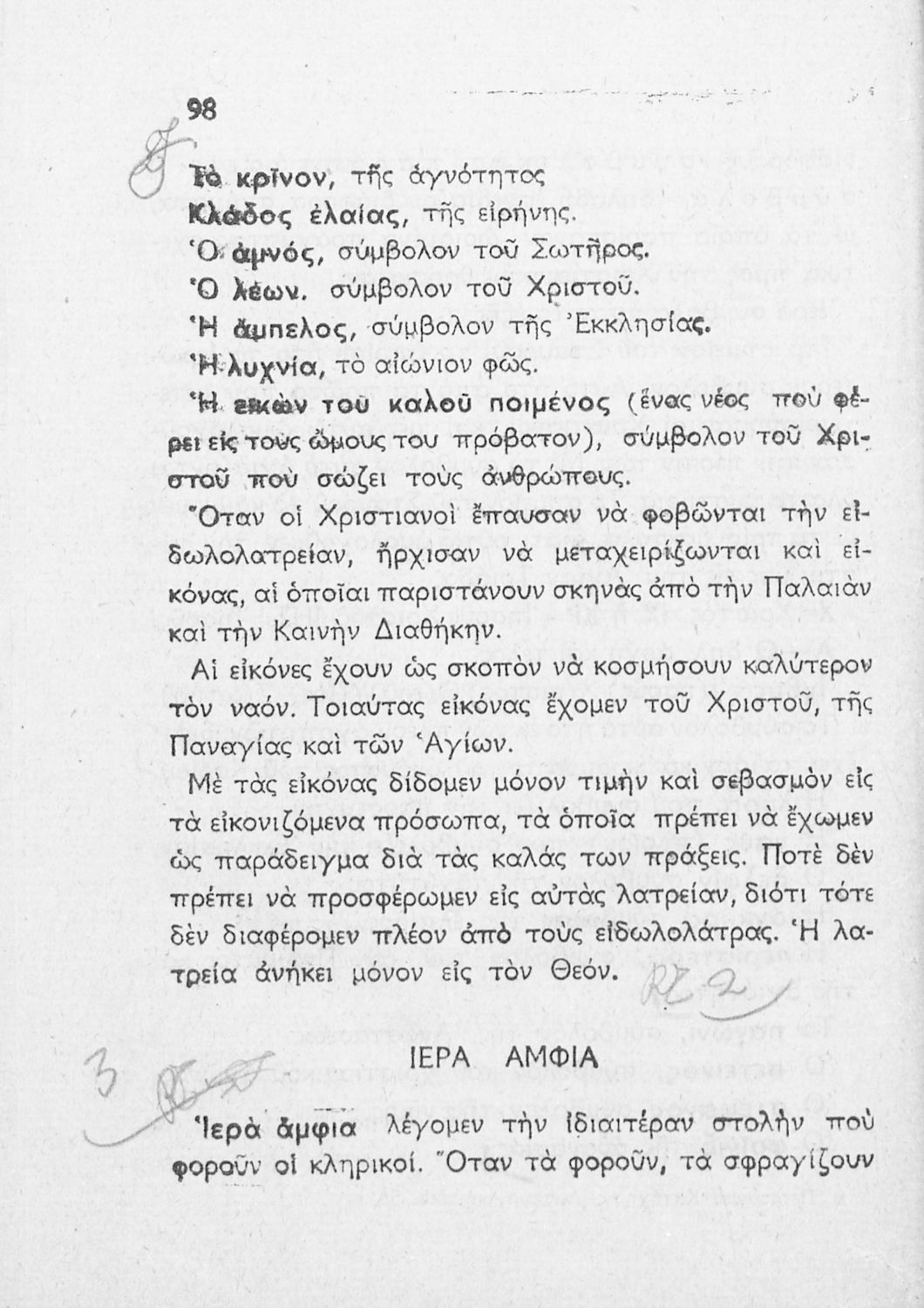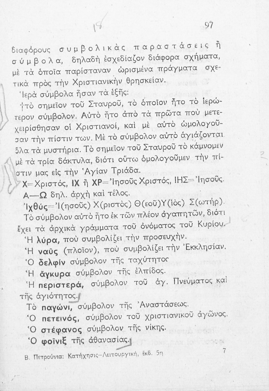 Κωδικός αναγνώρισης: 02-01296 Τίτλος: Κατήχησις-Λειτουργική. ΣΤ΄ Δημοτικού Συγγραφέας: Βασίλειος Ε. Πετρούνιας Μέγεθος και υπόστρωμα: Μαθητικό βοήθημα, μαλακό εξώφυλλο, 116 σελίδες. Εικόνες (ασπρόμαυρες), σκίτσα (ασπρόμαυρα). |