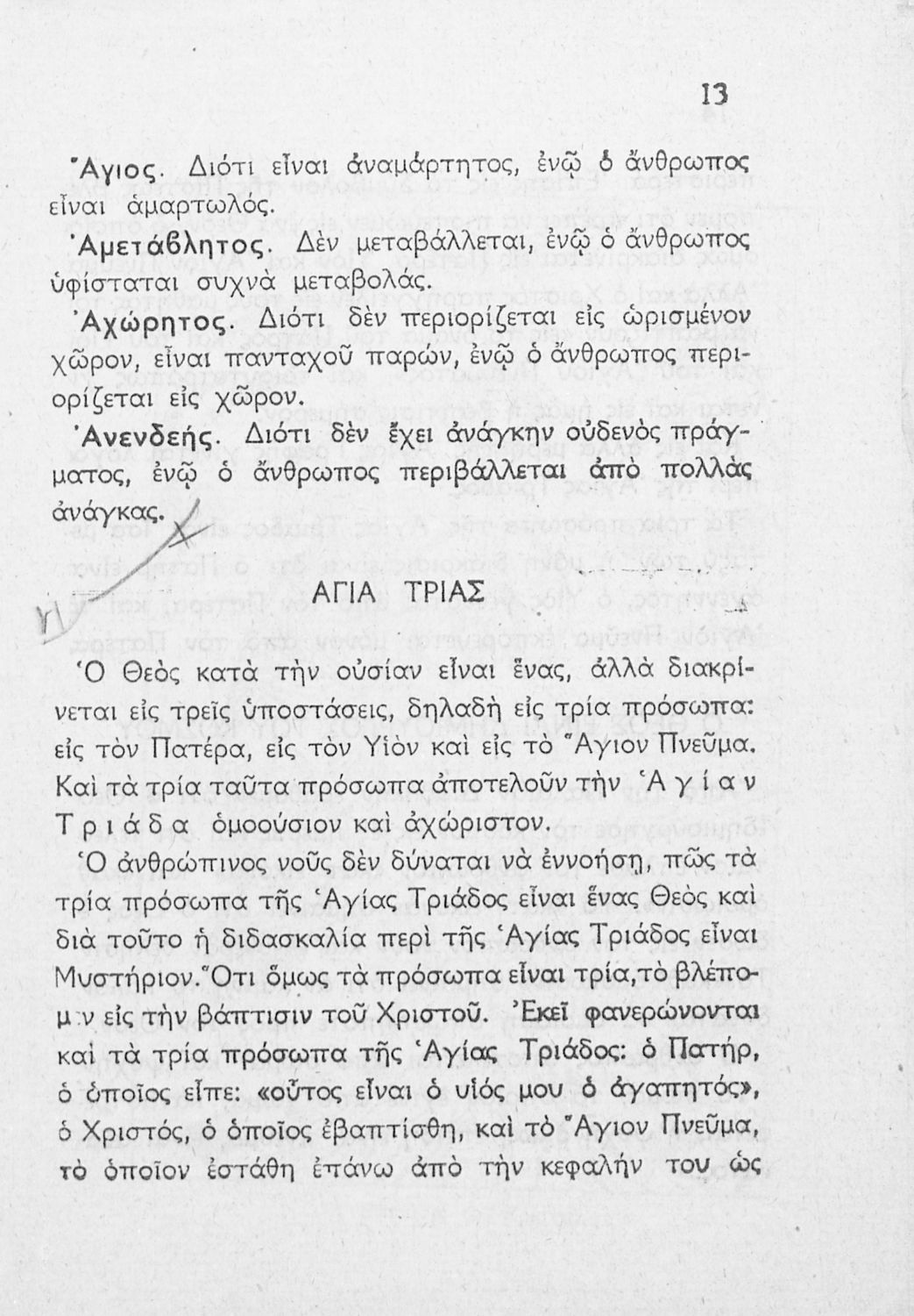 LDR 01169 2200205 4500 035 ## _a02-01296 040 ## _aΕλληνικό Λογοτεχνικό και Ιστορικό Αρχείο 041 ## _ael 100 ## _aΒασίλειος Ε. Πετρούνιας 110 ## _a1937 ΠΕΤ 245 0# _aΚατήχησις-Λειτουργική. ΣΤ΄ Δημοτικού 250 ## _a5η Έκδοση 260 ## _aΑθήνα _bΔημητράκος Α.Ε. _c1937 300 ## _a116 _bΕικόνες (ασπρόμαυρες), Σκίτσα (ασπρόμαυρα) 520 ## _aΜαθητικό βοήθημα Θρησκευτικών Δημοτικού που αναλύει την έννοια της κατήχησης με έμφαση στο ορθόδοξο χριστιανικό δόγμα, το οποίο εξετάζει από δογματική και ηθική σκοπιά. 521 ## _aΣΤ' Δημοτικού 522 ## _aΕλλάδα 546 ## _aΑπλή καθαρεύουσα 563 ## _aΜαλακό Εξώφυλλο 650 #4 _aΑγία Τριάδα _aΑκολουθίες _aΙερά άμφια _aΛειτουργίες _aΣύμβολο της πίστης