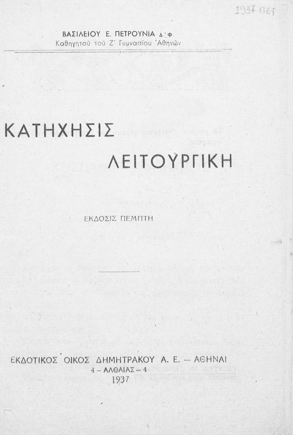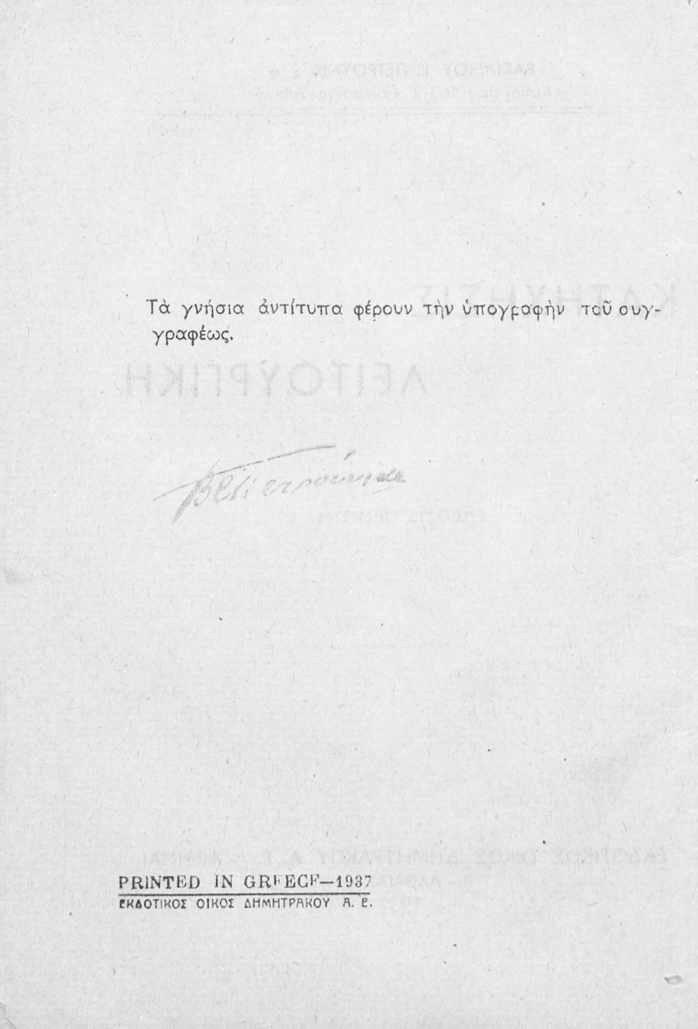 Εντοπισμός πρωτοτύπου: Ελληνικό Λογοτεχνικό και Ιστορικό Αρχείο Κωδικός βιβλιοθήκης: 1937 ΠΕΤ |