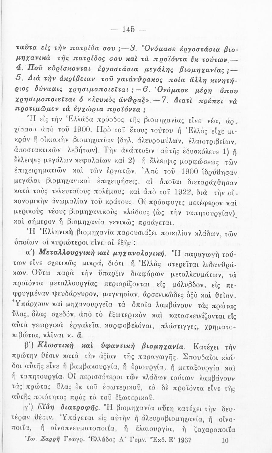 520 ## _aΣχολικό εγχειρίδιο Γεωγραφίας Α΄ Γυμνασίου που εξετάζει την Ελλάδα από γεωφυσική, πολιτική, οικονομική και πολιτισμική άποψη. Περιέχει και ειδική αναφορά στις "ελληνικές νήσους υπό ξένη κατοχή" στις οποίες περιλαμβάνονται τα Δωδεκάνησα και η Κύπρος.