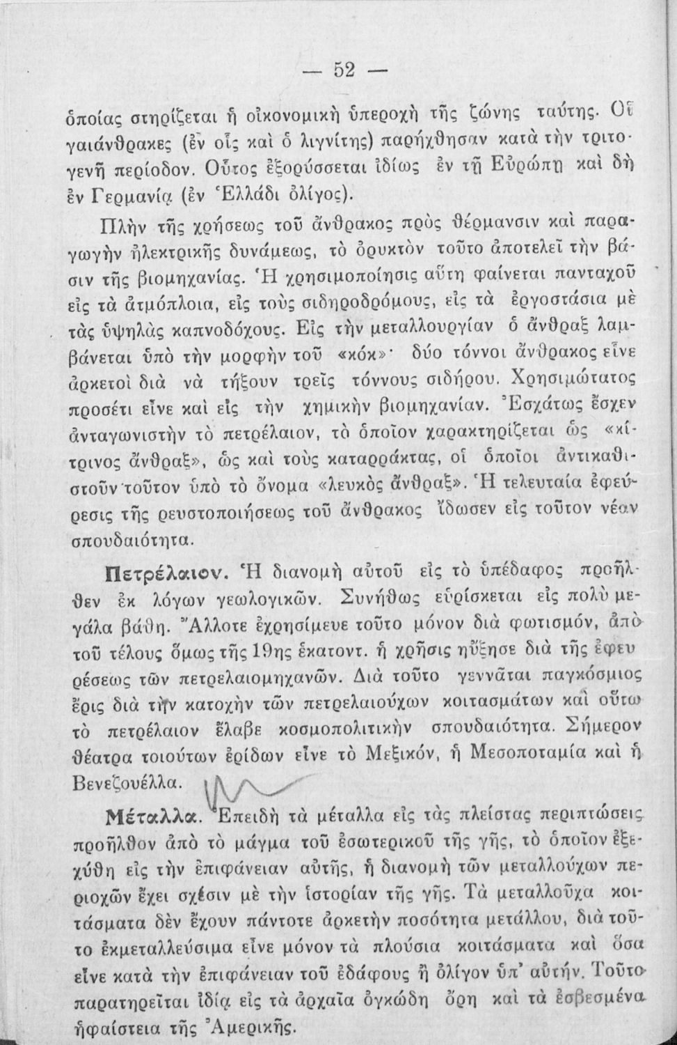 Πρόκειται για σχολικό εγχειρίδιο το οποίο μέσα από πλούσια εικονογράφηση προοριζόταν για τη διδασκαλία του μαθήματος της Ανθρωπογεωγραφίας της Ελλάδας στο Γυμνάσιο και τα πρακτικά Λύκεια. Φέρει κάποιες προσωπικές σημειώσεις του μαθητή.
