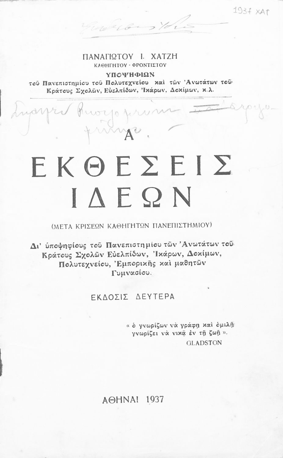 Έτος έκδοσης: 1937 Τόπος έκδοσης: Αθήνα Έκδοση: 2η |