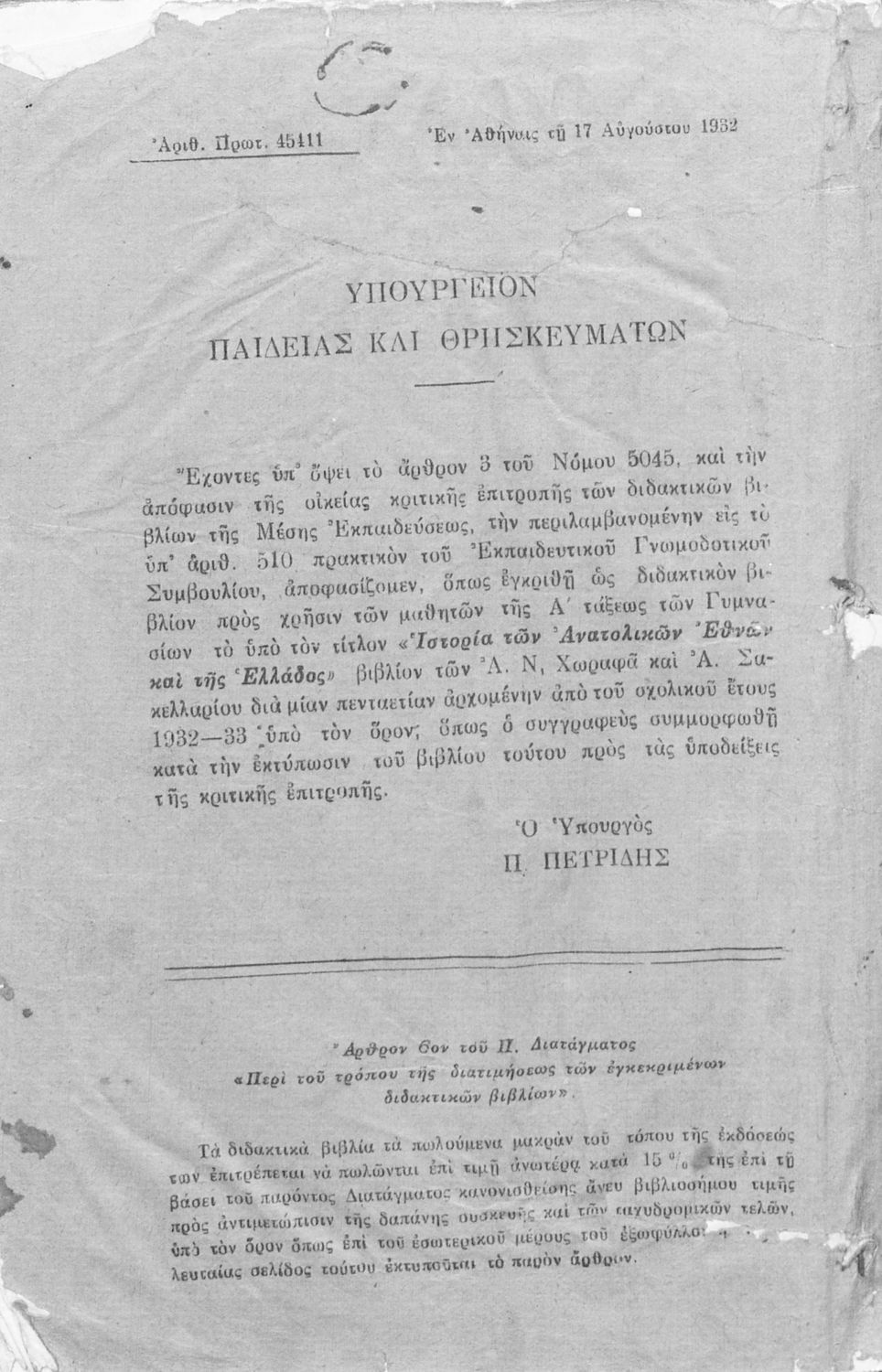 Υπουργική απόφαση / Σύμβαση: 45411/17-8-1932