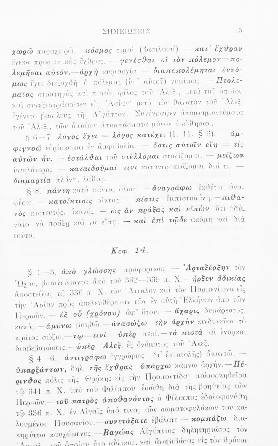 Σχολικό εγχειρίδιο Αρχαίων Ελληνικών Γ΄ Γυμνασίου που περιλαμβάνει σύντομο βιογραφικό σημείωμα του Αρριανού, εισαγωγή στο έργο, αποσπάσματα από το πρώτο και δεύτερο βιβλίο της Ανάβασης του Αλέξανδρου και ετυμολογικές σημειώσεις