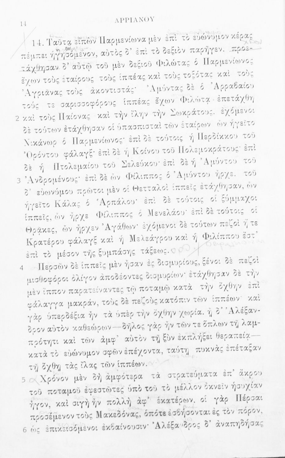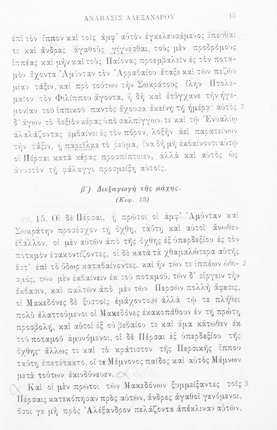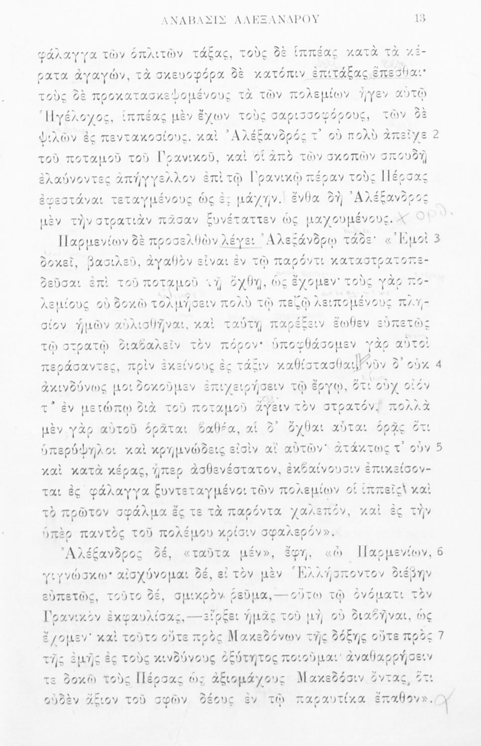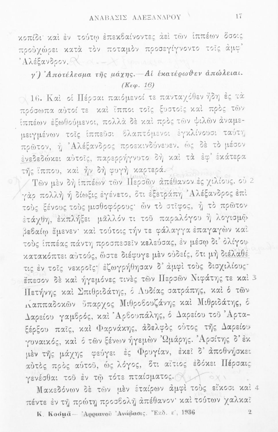Σχολικό εγχειρίδιο Αρχαίων Ελληνικών Γ΄ Γυμνασίου που περιλαμβάνει σύντομο βιογραφικό σημείωμα του Αρριανού, εισαγωγή στο έργο, αποσπάσματα από το πρώτο και δεύτερο βιβλίο της Ανάβασης του Αλέξανδρου και ετυμολογικές σημειώσεις