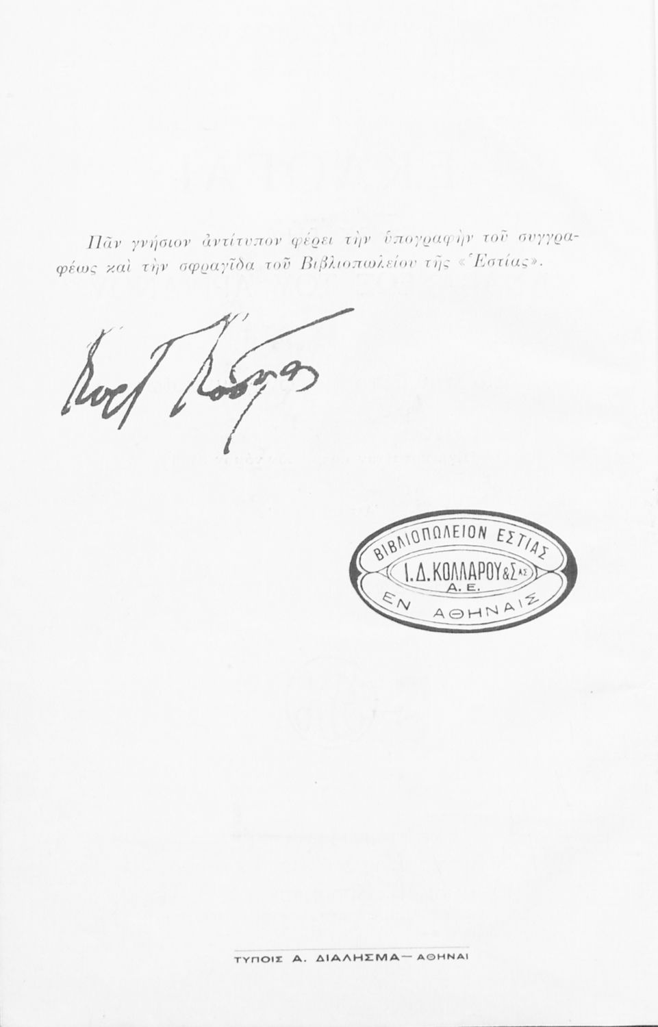 Εντοπισμός πρωτοτύπου: Ελληνικό Λογοτεχνικό και Ιστορικό Αρχείο Κωδικός βιβλιοθήκης: 1936 ΑΡΡ |