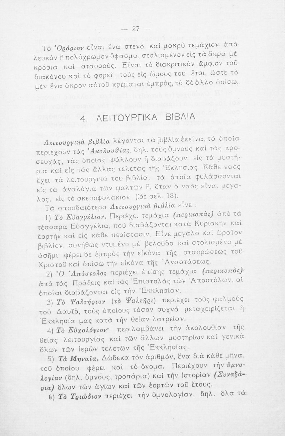 Σχολικό εγχειρίδιο Θρησκευτικών για τις Ε' και ΣΤ΄ Δημοτικού που αναφέρεται στη δογματική διδασκαλία της Ορθόδοξης Χριστιανικής πίστης και ερμηνεύει τη θεία λειτουργία.