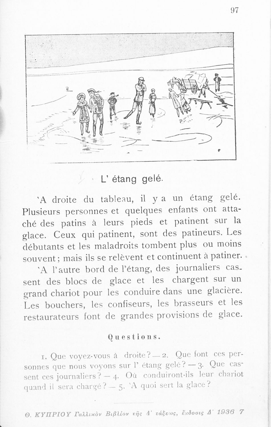 Γαλλικόν βιβλίον της Δ΄ τάξεως, Εγκεκριμένον υπό του Υπουργείου της Παιδείας κατά τον Νόμον 5045 δια την πενταετίαν 1933-1938 διά την Δ΄ τάξιν των Εξαταξίων Γυμνασίων και τας αντιστοίχους τάξεις των λοιπών Σχολείων της Μέσης Εκπαιδεύσεως