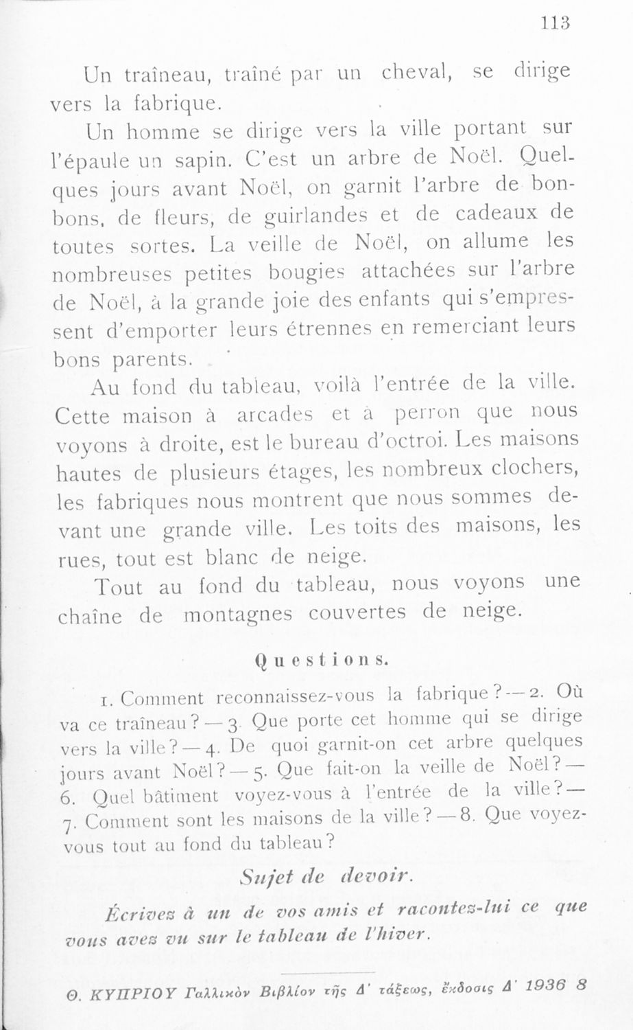 Γαλλικόν βιβλίον της Δ΄ τάξεως, Εγκεκριμένον υπό του Υπουργείου της Παιδείας κατά τον Νόμον 5045 δια την πενταετίαν 1933-1938 διά την Δ΄ τάξιν των Εξαταξίων Γυμνασίων και τας αντιστοίχους τάξεις των λοιπών Σχολείων της Μέσης Εκπαιδεύσεως