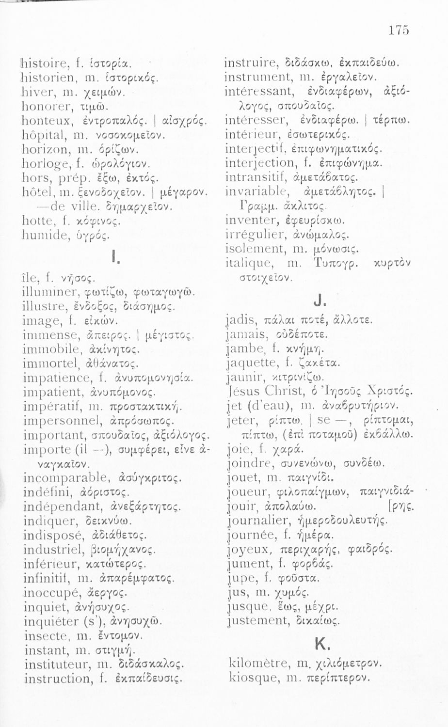 Βαθμίδα εκπαίδευσης: Δευτεροβάθμια Τάξη: Δ' Γυμνασίου Μάθημα: Γαλλικά Γλώσσα: Καθαρεύουσα Παρουσίαση περιεχομένου: Σχολικό εγχειρίδιο Γαλλικών Δ΄ Γυμνασίου που περιλαμβάνει κείμενα που αντλούν τα θέματά τους από την ύπαιθρο και την οικογενειακή και κοινωνική ζωή και γλωσσικές και ερμηνευτικές σημειώσεις. περιλαμβάνονται ασκήσεις με τις κλήσεις των ρημάτων και κατάλογος λεξιλογίου. |
