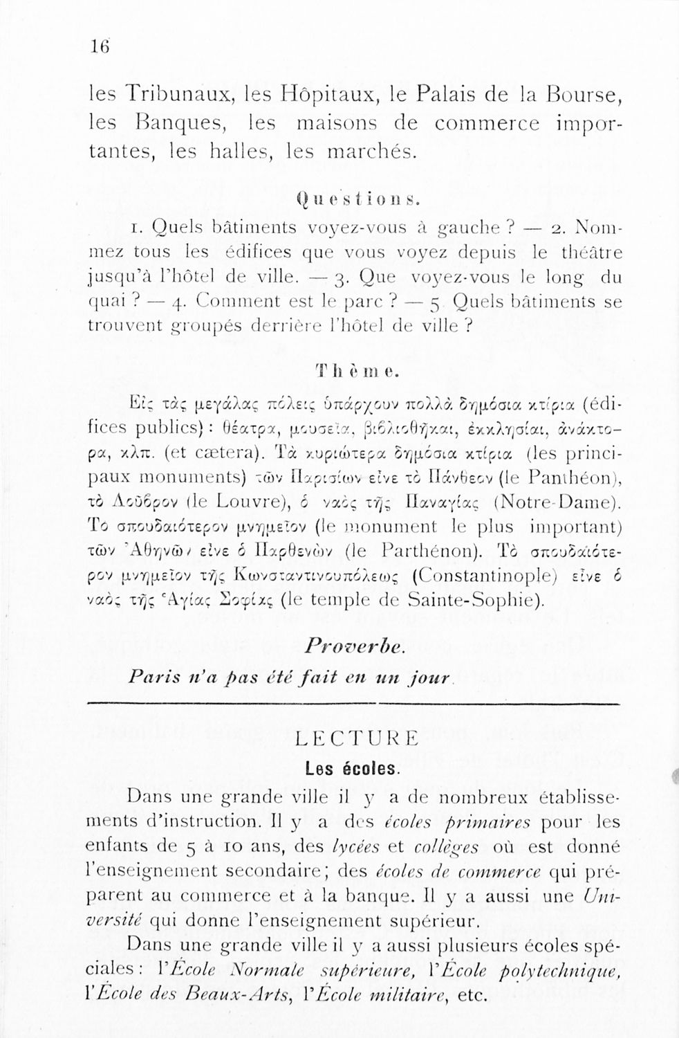 LDR 01675 2200217 4500 035 ## _a02-01328 040 ## _aΕλληνικό Λογοτεχνικό και Ιστορικό Αρχείο 041 ## _ael 100 ## _aΘεόδωρος Γ. Κύπριος 110 ## _a1936 ΚΥΠ ΓΑΛ 245 0# _aΓαλλικόν βιβλίον της Δ΄ τάξεως, Εγκεκριμένον υπό του Υπουργείου της Παιδείας κατά τον Νόμον 5045 δια την πενταετίαν 1933-1938 διά την Δ΄ τάξιν των Εξαταξίων Γυμνασίων και τας αντιστοίχους τάξεις των λοιπών Σχολείων της Μέσης Εκπαιδεύσεως 250 ## _a4η Έκδοση 260 ## _aΑθήνα _bΙωάννης Δ. Κολλάρος και ΣΙΑ, Βιβλιοπωλείο της "Εστίας" _c1936 300 ## _a212 _bΣκίτσα (ασπρόμαυρα) 520 ## _aΣχολικό εγχειρίδιο Γαλλικών Δ΄ Γυμνασίου που περιλαμβάνει κείμενα που αντλούν τα θέματά τους από την ύπαιθρο και την οικογενειακή και κοινωνική ζωή και γλωσσικές και ερμηνευτικές σημειώσεις. περιλαμβάνονται ασκήσεις με τις κλήσεις των ρημάτων και κατάλογος λεξιλογίου. 521 ## _aΔ' Γυμνασίου 522 ## _aΕλλάδα 546 ## _aΚαθαρεύουσα 563 ## _aΣκληρό Εξώφυλλο 583 ## _a41723/3-8-1933 650 #4 _aGrammaire _aLa ville _aLectures _aL΄ ete