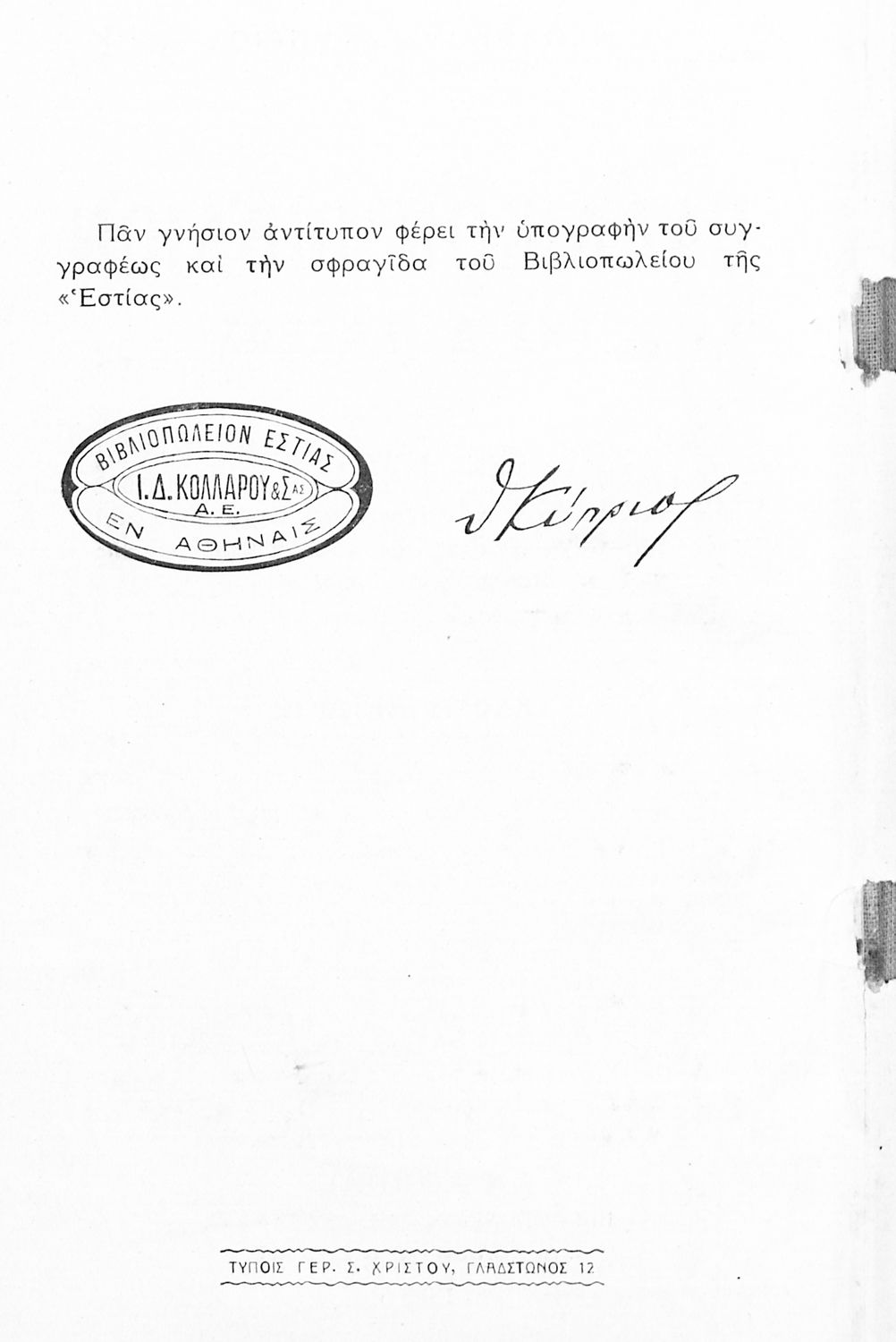 Εντοπισμός πρωτοτύπου: Ελληνικό Λογοτεχνικό και Ιστορικό Αρχείο Κωδικός βιβλιοθήκης: 1936 ΚΥΠ ΓΑΛ |