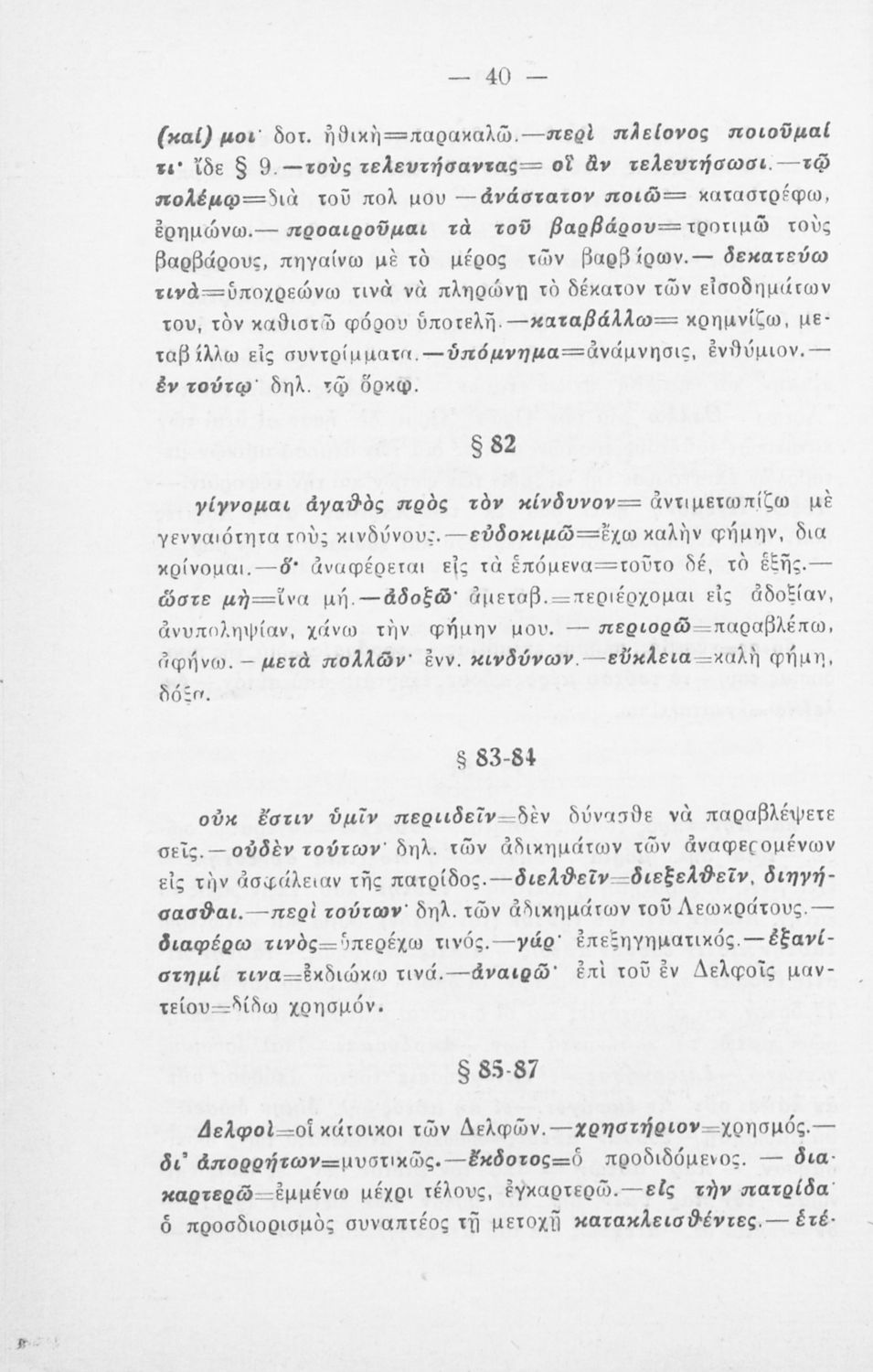 Μαθητικό βοήθημα Β΄ Τετραταξίου Γυμνασίου που περιλαμβάνει την μετάφραση αποσπασμάτων από το έργο του Ξενοφώντα Απομνημονεύματα και πραγματολογικά, γραμματικά και λεξιλογικά σχόλια.