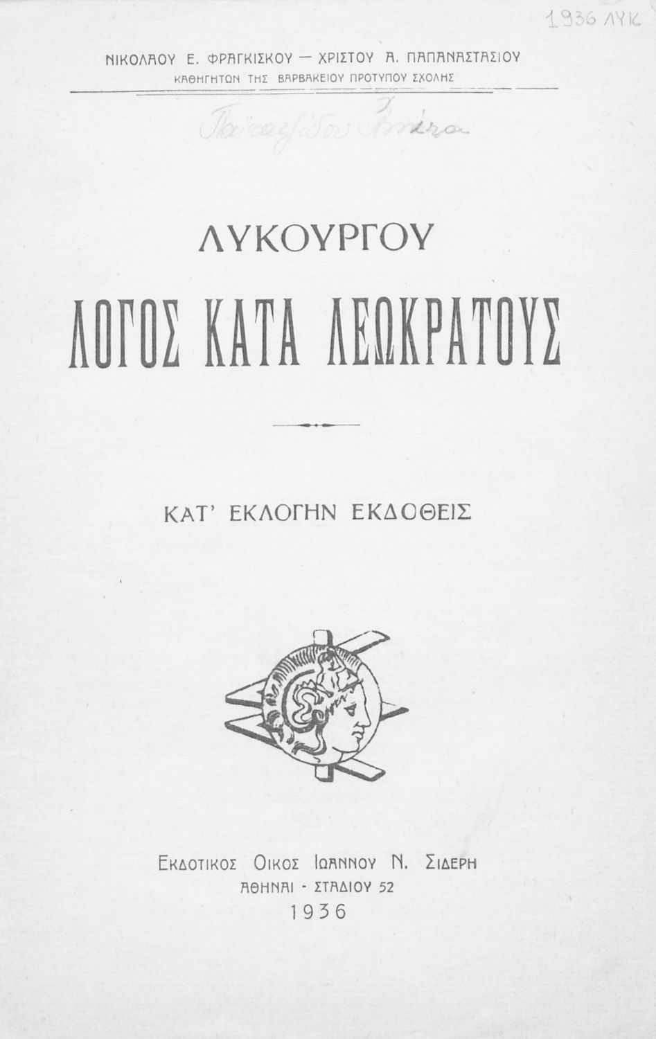 Εκδότης: Ιωάννης Ν. Σιδέρης Έτος έκδοσης: 1936 Τόπος έκδοσης: Αθήνα Έκδοση: 1η |