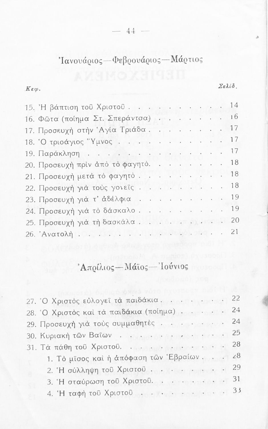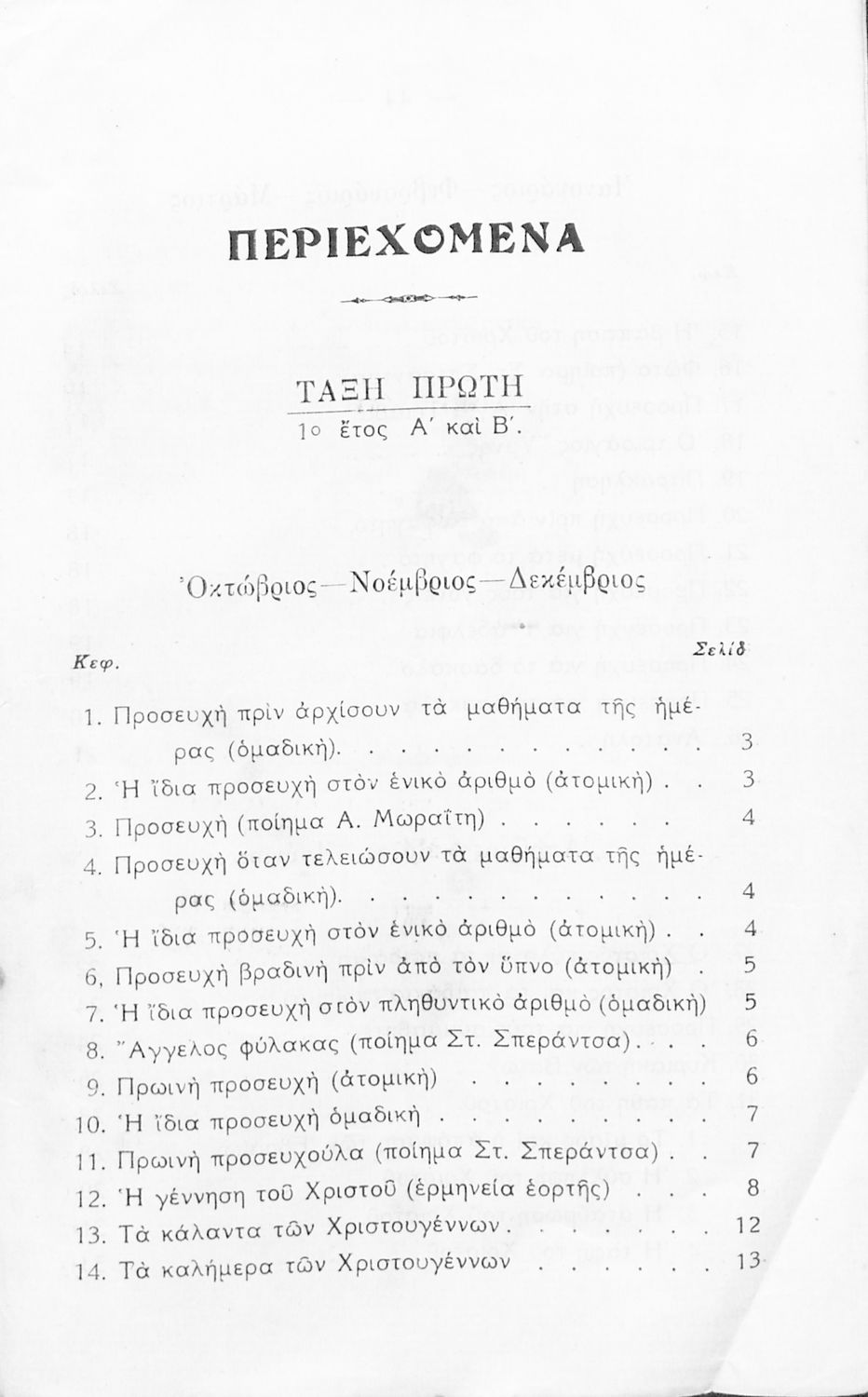 Μαθητικό βοήθημα Θρησκευτικών Α΄ και Β΄ Δημοτικού που περιλαμβάνει ποιήματα και πεζά χριστιανικού περιεχομένου. Φέρει την έγκριση της Ιεράς Συνόδου.