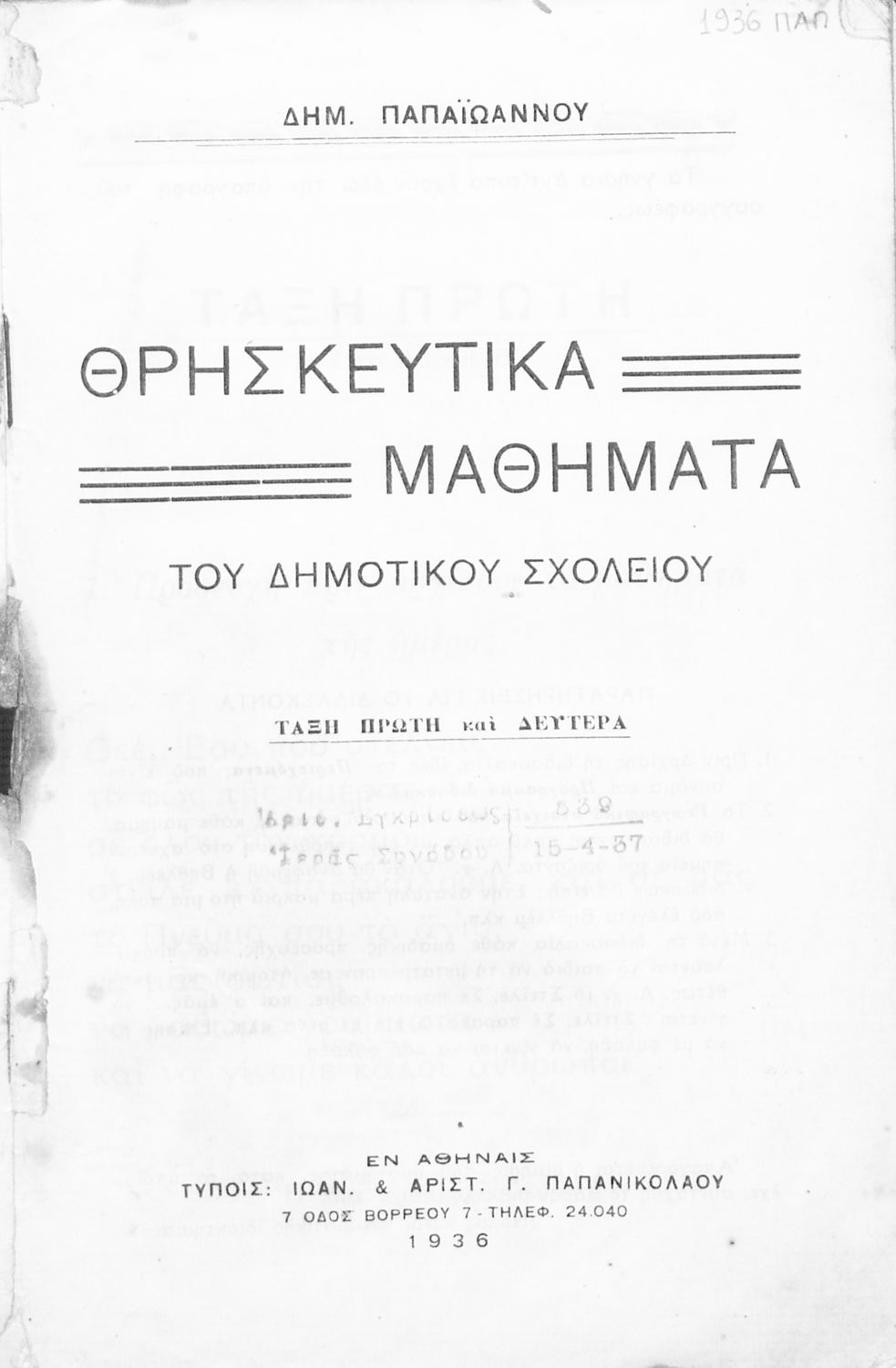 Εκδότης: Ιωαν. & Αριστ. Γ. Παπανικολάου Έτος έκδοσης: 1936 Τόπος έκδοσης: Αθήνα |