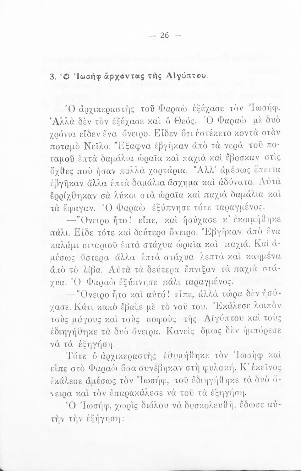 Το σύγγραμμα ήταν σχολικό εγχειρίδιο για το μαθήματα των Θρησκευτικών στο Δημοτικό. Περιγράφει σημαντικά γεγονότα της θρησκευτικής ζωής ξεκινώντας με την Καινή Διαθήκη. Το βιβλίο καλύπτει τα χρόνια του Ιησού ...