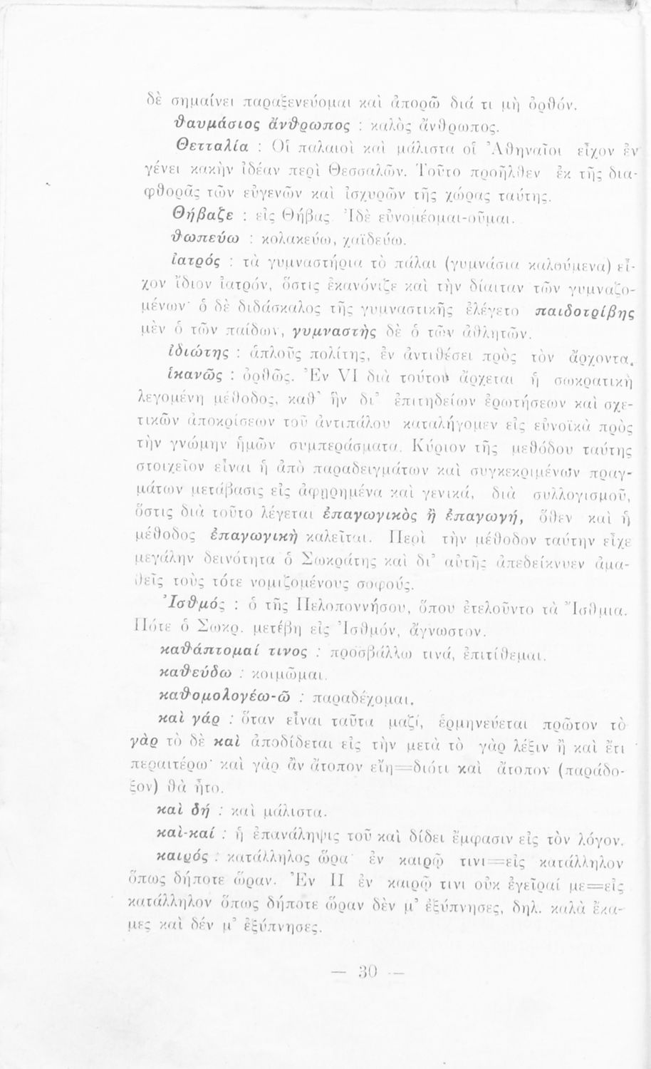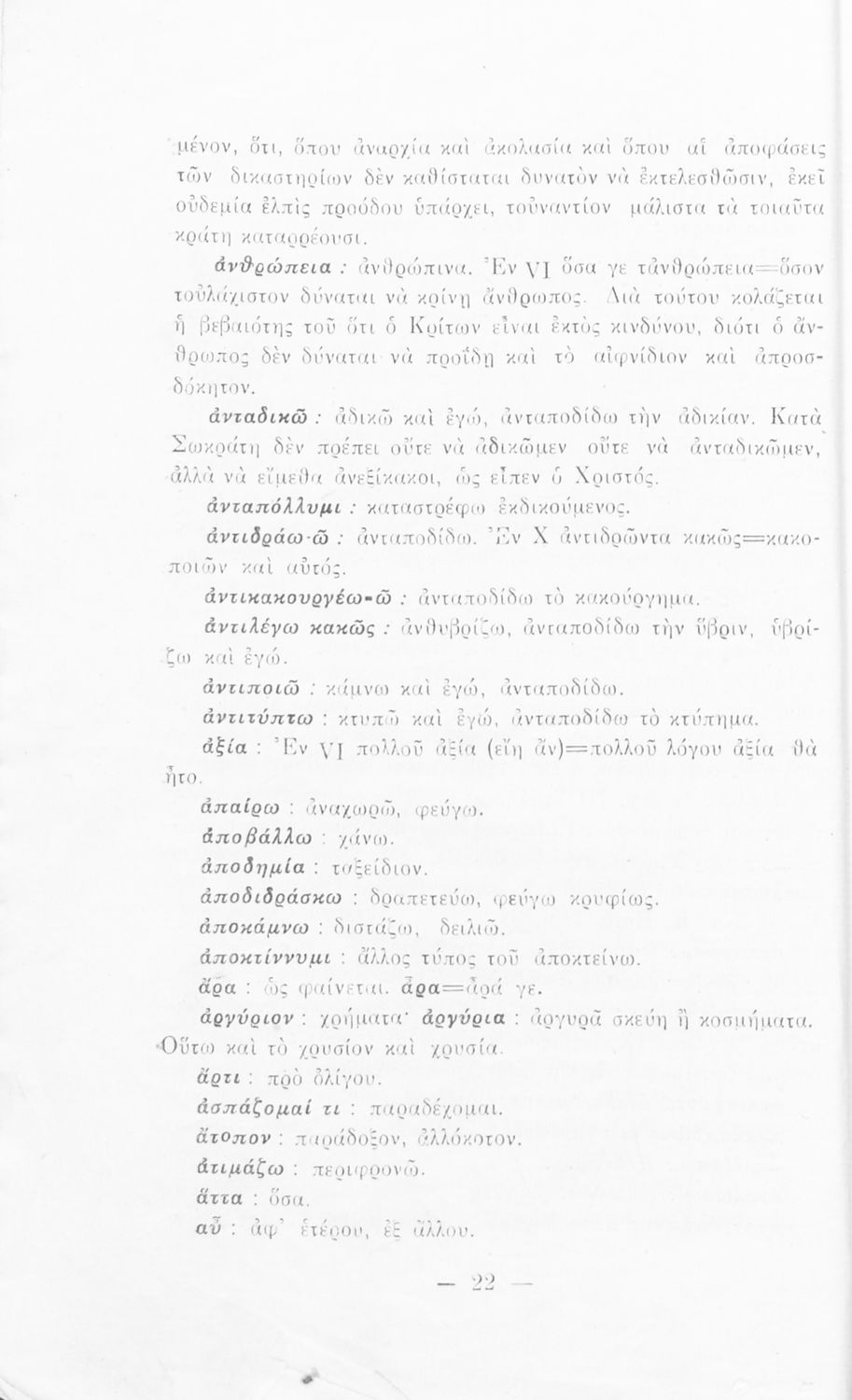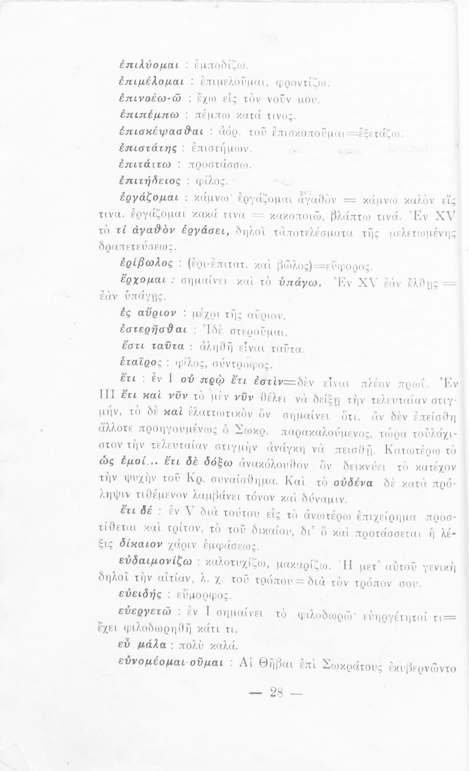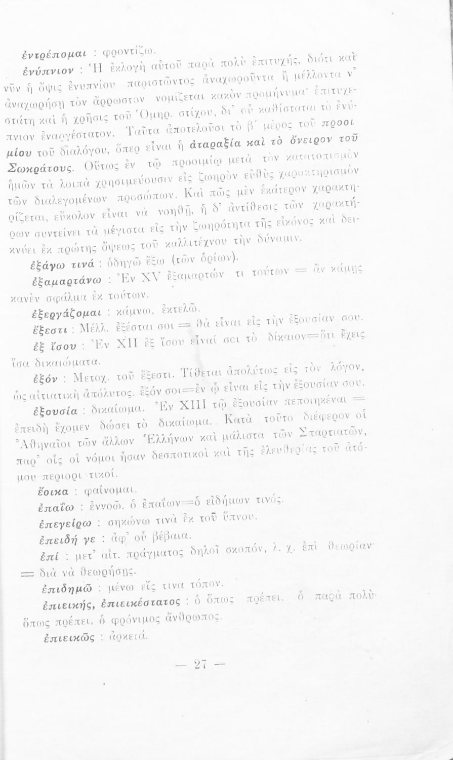 Μαθητικό βοήθημα Αρχαίων Ελληνικών της Γ΄ τάξης των τετρατάξιων Γυμνασίων. Το βιβλίο περιέχει σε μετάφραση το έργο του Πλάτωνα Απολογία του Σωκράτη.