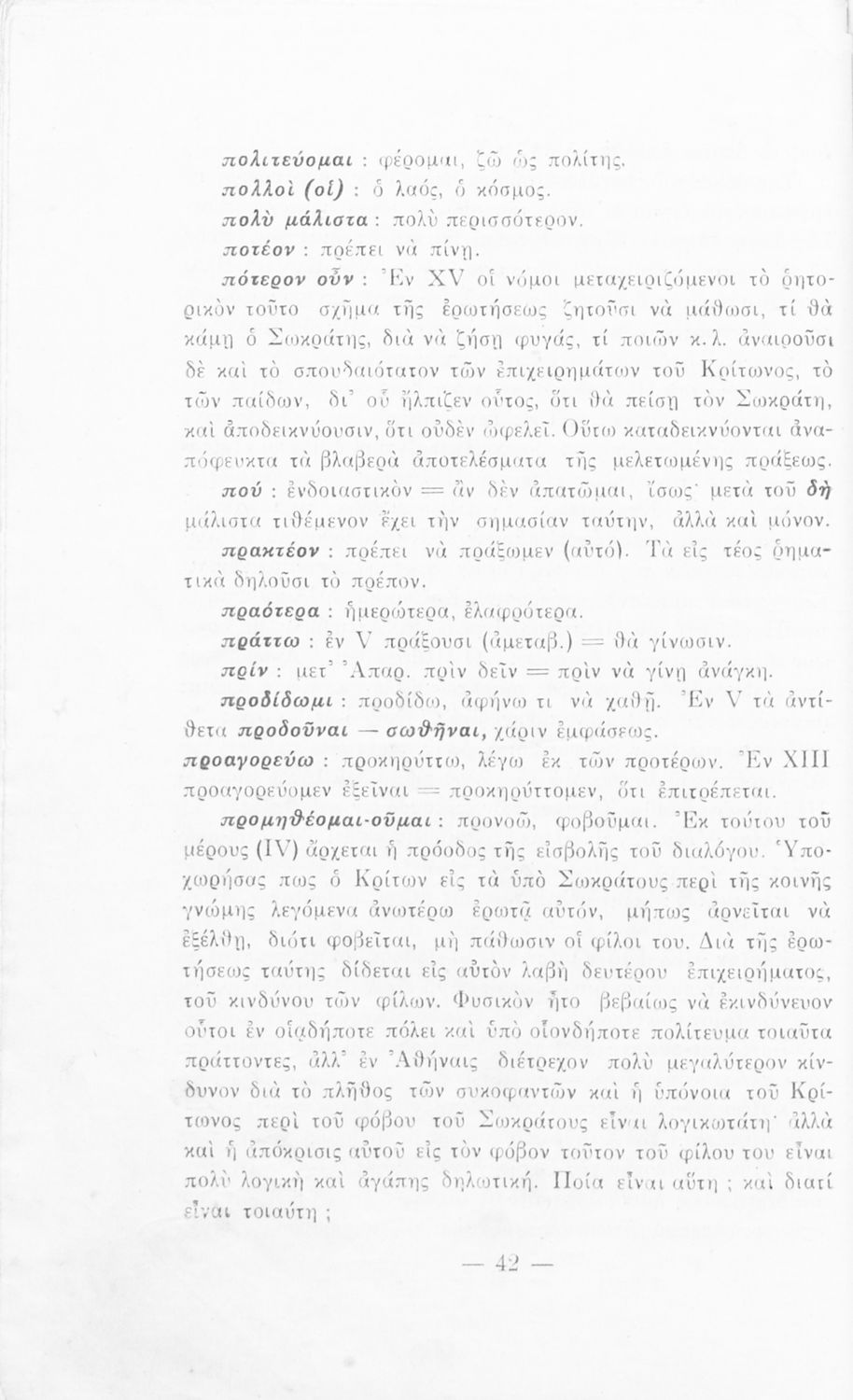 Πλάτωνος Κρίτων, εγκεκριμένον προς χρήσιν των μαθητών της Ε΄ τάξεως των εξατάξιων Γυμνασίων και της αντιστοίχου των άλλων σχολείων και διδασκαλείων (μετά λεξιλογίου)