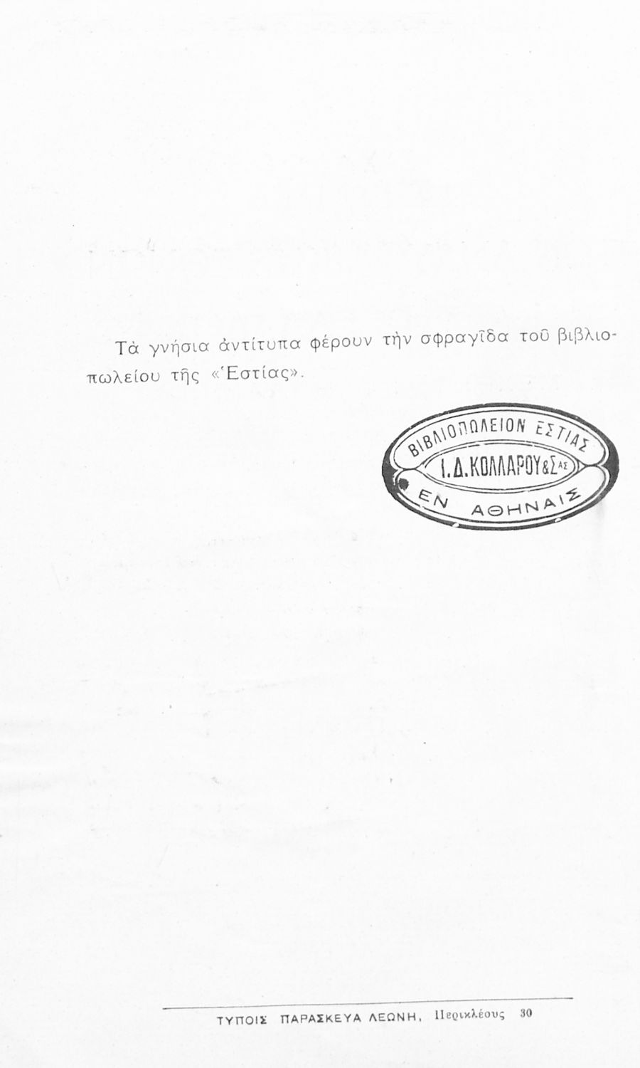 Εντοπισμός πρωτοτύπου: Ελληνικό Λογοτεχνικό και Ιστορικό Αρχείο Κωδικός βιβλιοθήκης: 1936 ΧΩΡ ΙΣΤ |