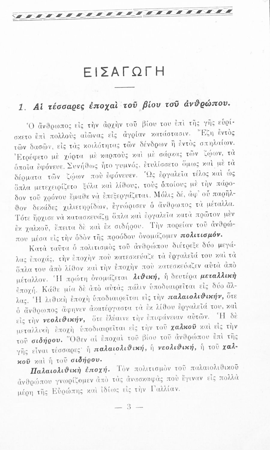 Βαθμίδα εκπαίδευσης: Δευτεροβάθμια Τάξη: Α' Γυμνασίου Μάθημα: Ιστορία Γλώσσα: Απλή καθαρεύουσα Παρουσίαση περιεχομένου: Σχολικό εγχειρίδιο Ιστορίας Α΄ Γυμνασίου που καλύπτει την περίοδο από την εμφάνιση των πρώτων πολιτισμών μέχρι τις μεταρρυθμίσεις του Κλεισθένη. |