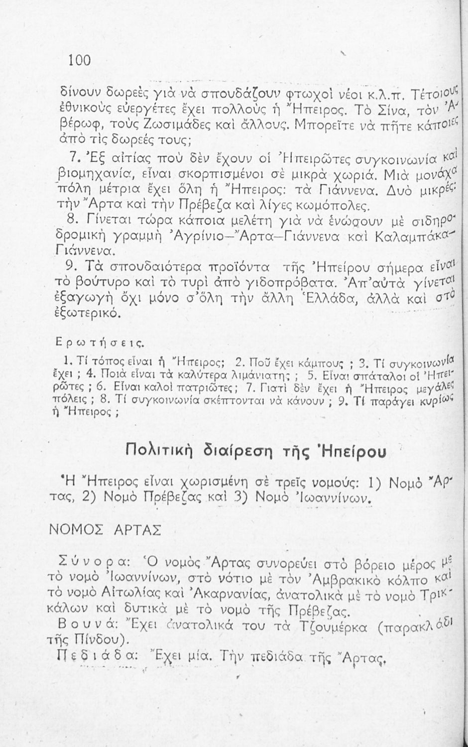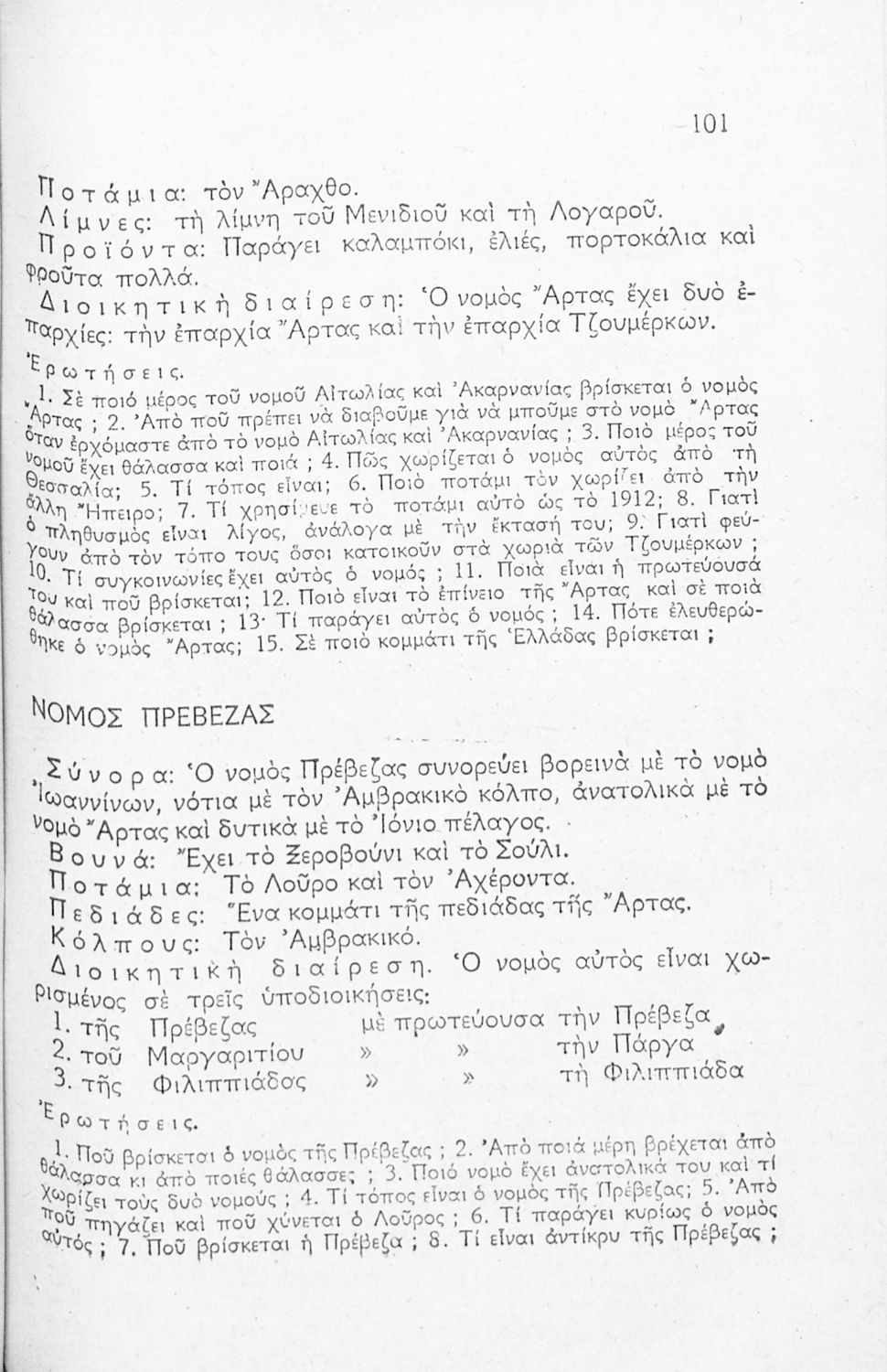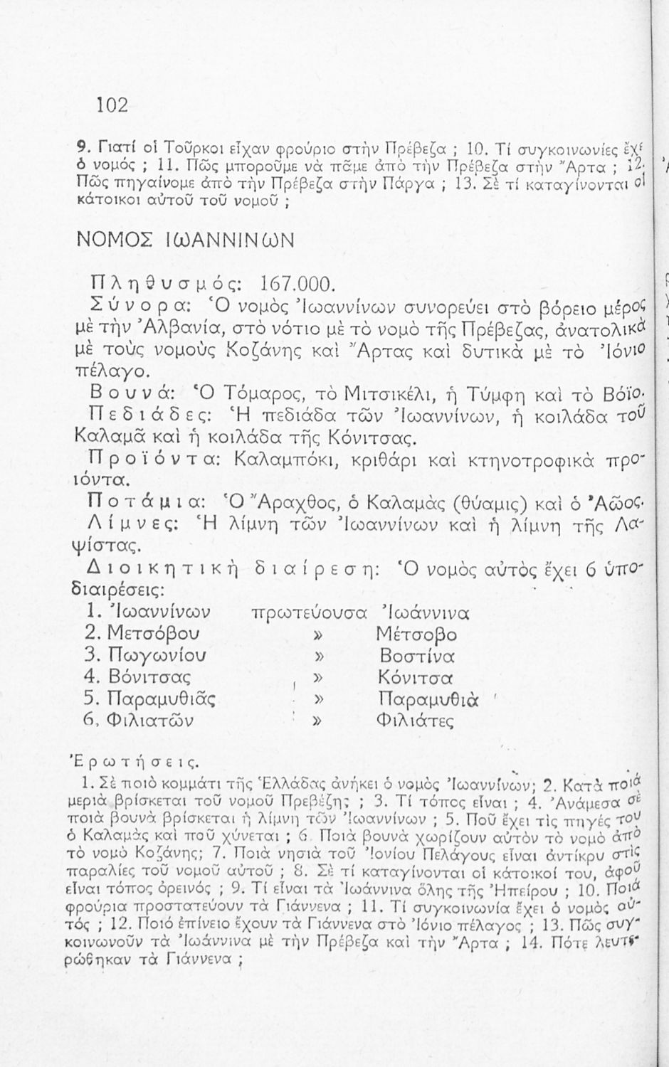 Μαθητικό βοήθημα Γεωγραφίας Γ΄ και Δ΄ Δημοτικού που αποτελεί μια γενική επισκόπηση της Ελλάδας ανά διαμέρισμα και νομό. Περιέχει και στατιστικούς πίνακες.