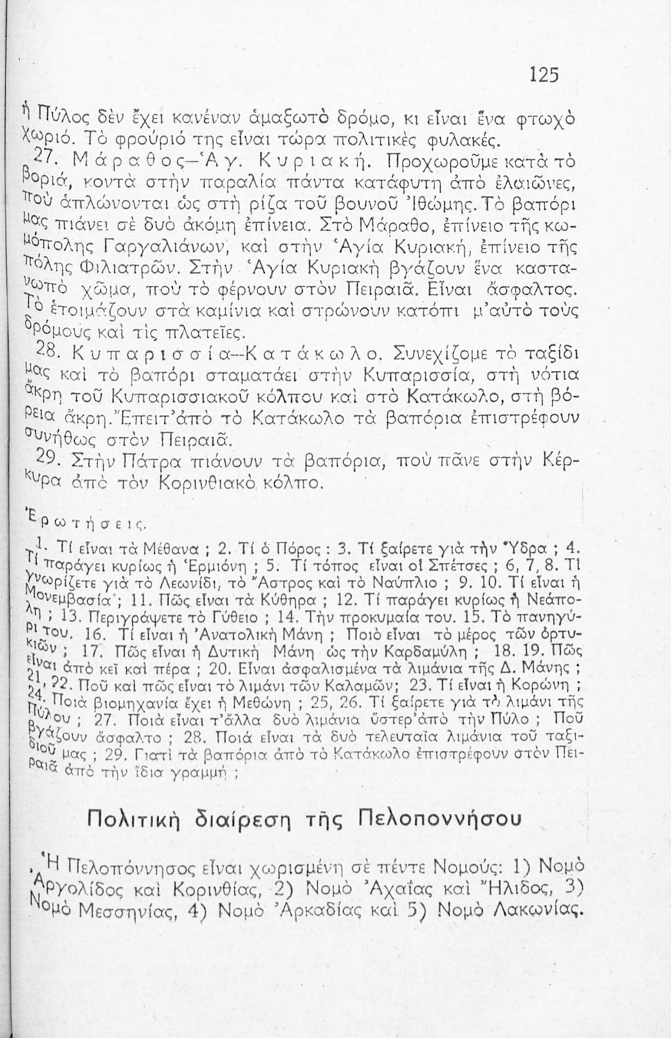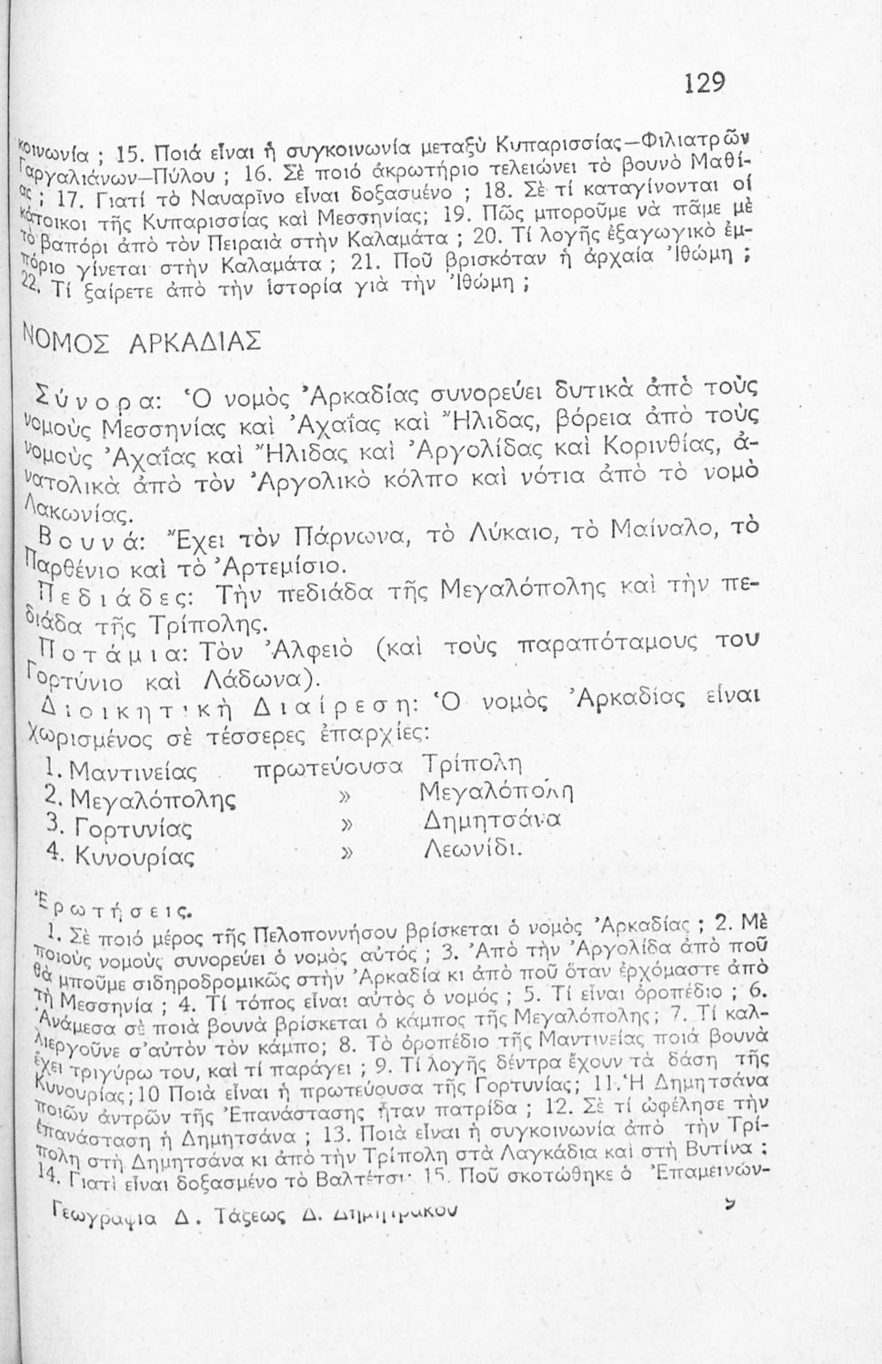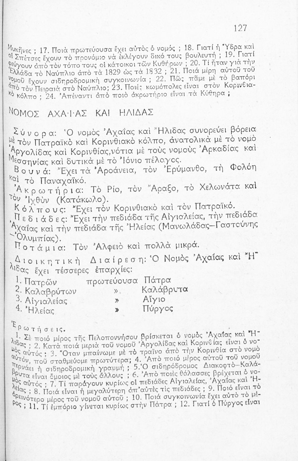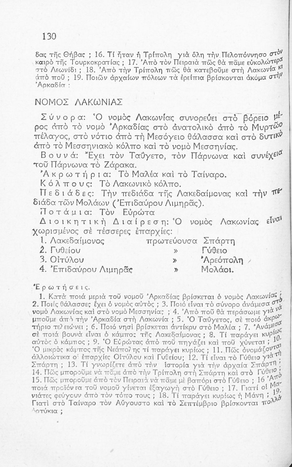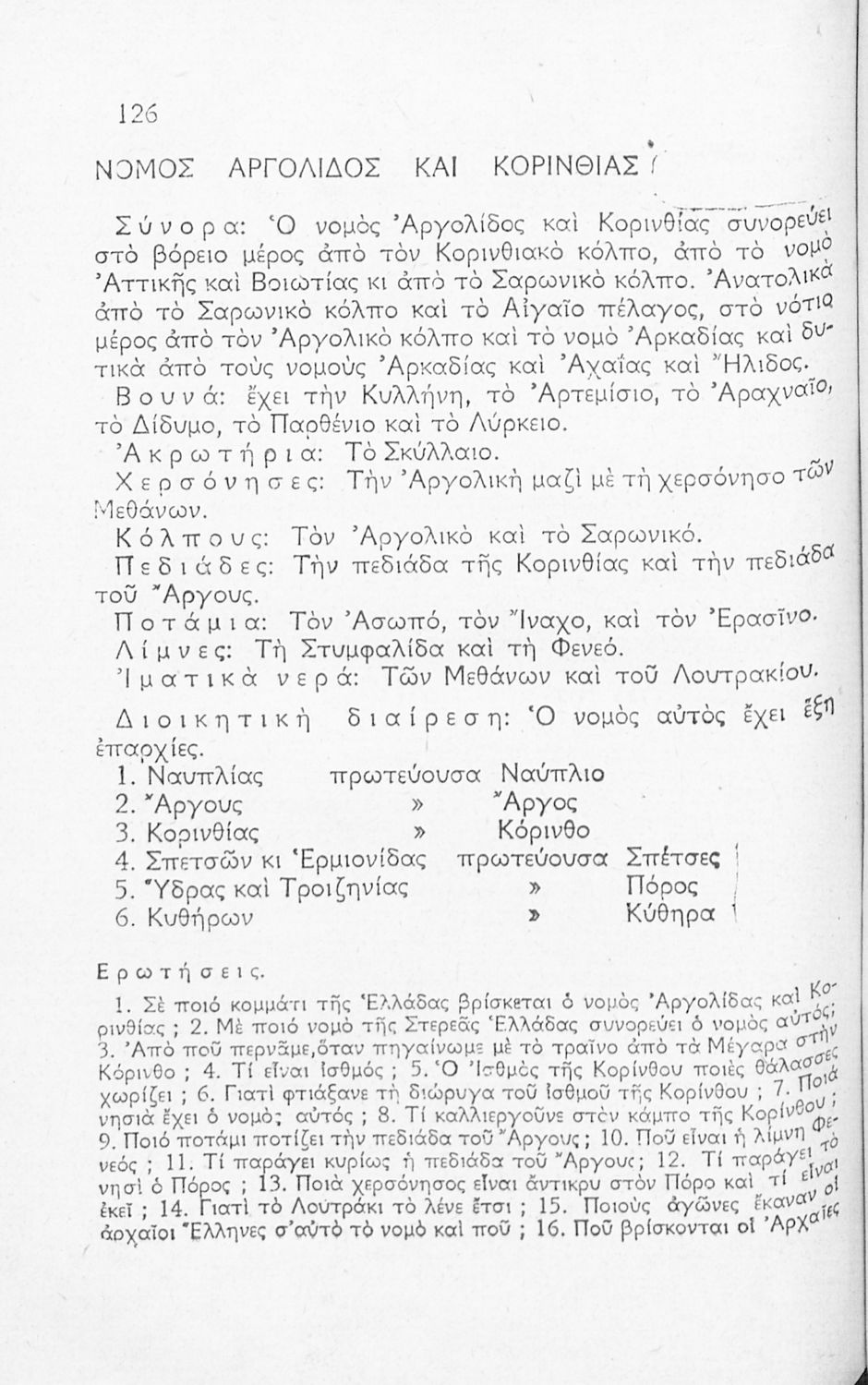 Σχολικό εγχειρίδιο Γεωγραφίας για τη Γ΄, Δ΄ Δημοτικού. Μελετά την Ελλάδα ανά γεωγραφικό νομό με πληροφορίες από το χάρτη της περιοχής και στοιχεία της ιστορίας και της οικονομικής ζωής.