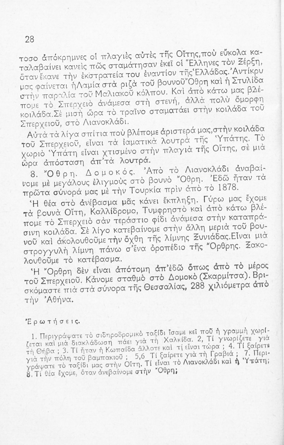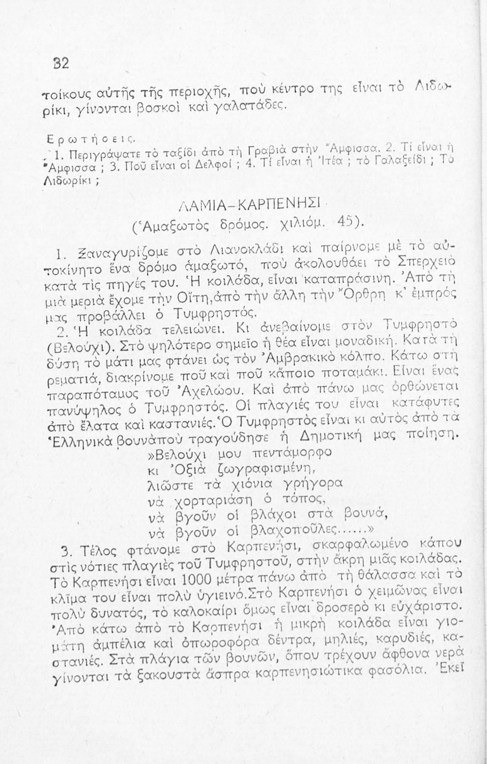 Σχολικό εγχειρίδιο Γεωγραφίας για τη Γ΄, Δ΄ Δημοτικού. Μελετά την Ελλάδα ανά γεωγραφικό νομό με πληροφορίες από το χάρτη της περιοχής και στοιχεία της ιστορίας και της οικονομικής ζωής.