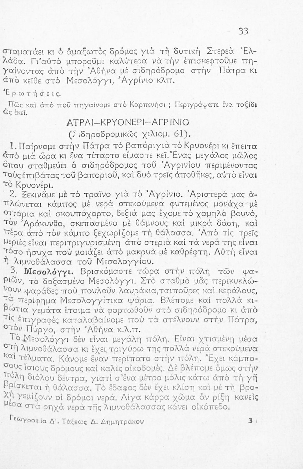 Μαθητικό βοήθημα Γεωγραφίας για την Γ΄ και Δ΄ Δημοτικού που περιέχει χάρτες περιοχών της Ελλάδας τις οποίες εξετάζει από γεωφυσική, πολιτική και οικονομική άποψη.