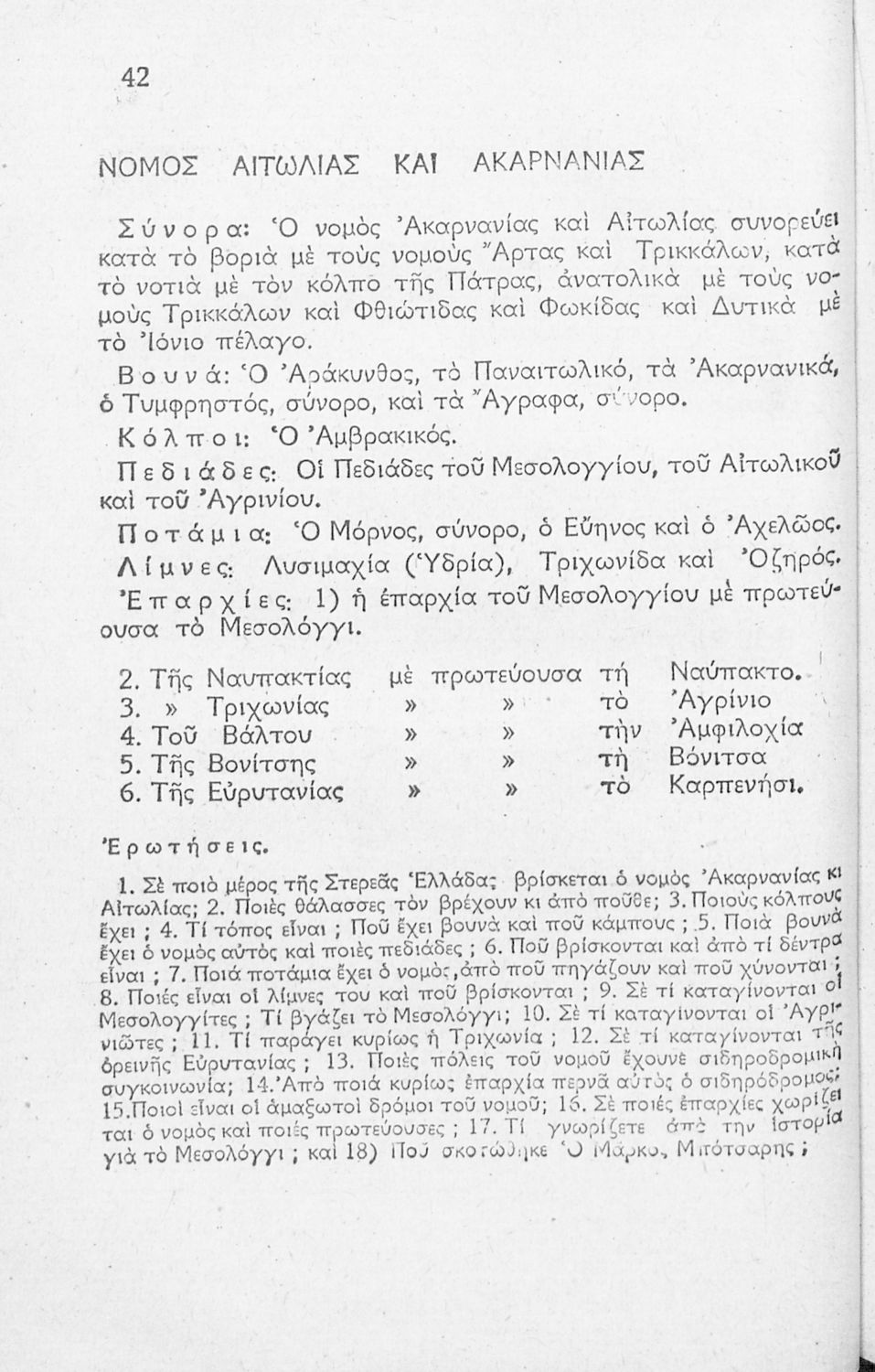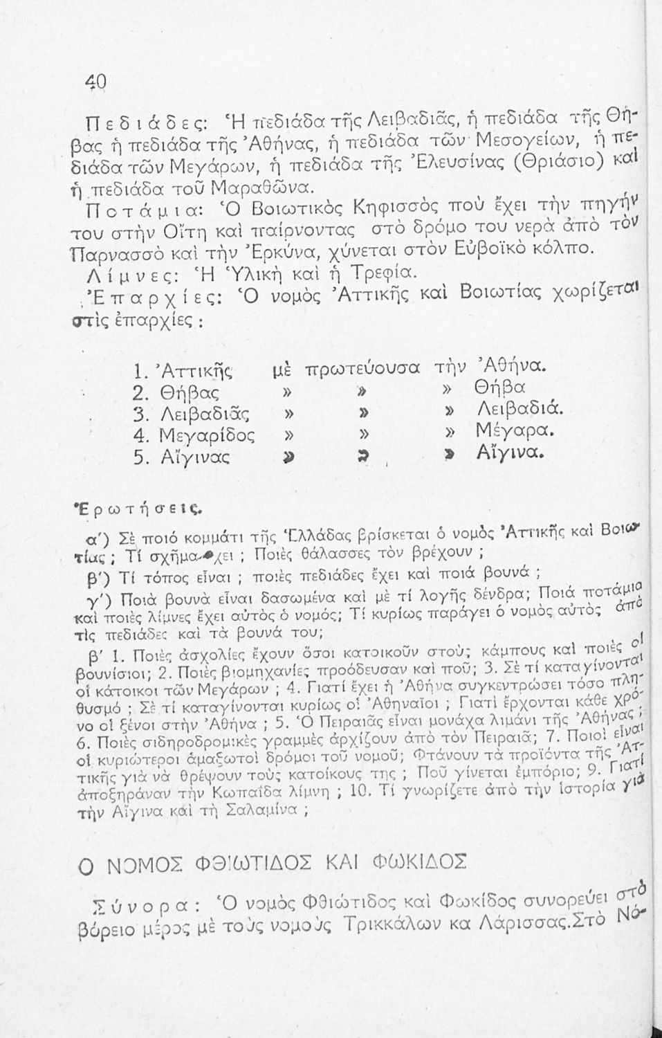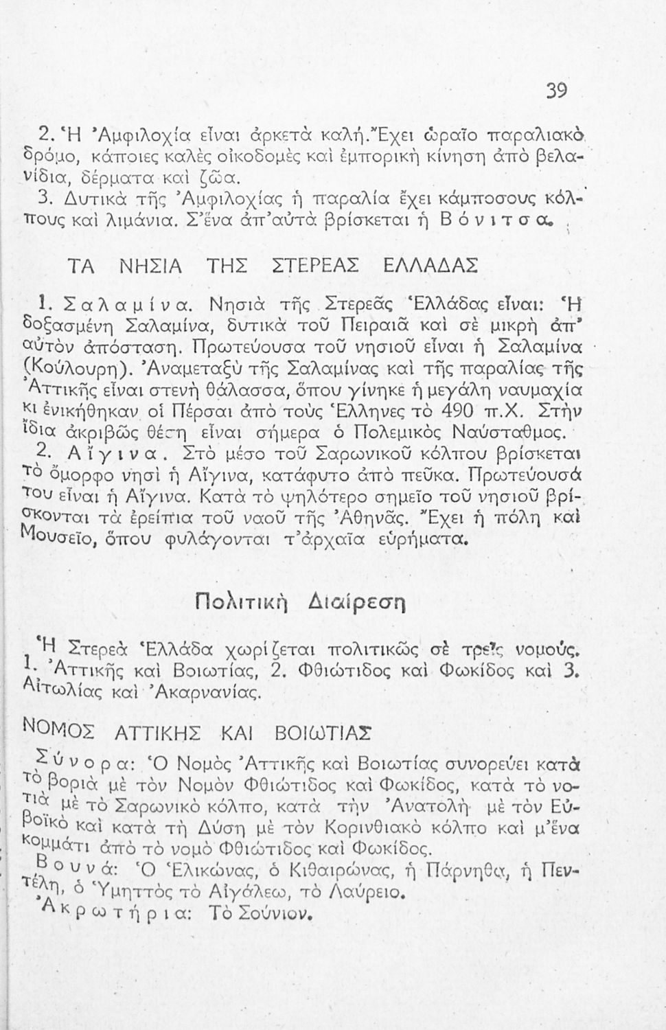 Μαθητικό βοήθημα Γεωγραφίας Γ΄ και Δ΄ Δημοτικού που αποτελεί μια γενική επισκόπηση της Ελλάδας ανά διαμέρισμα και νομό. Περιέχει και στατιστικούς πίνακες.