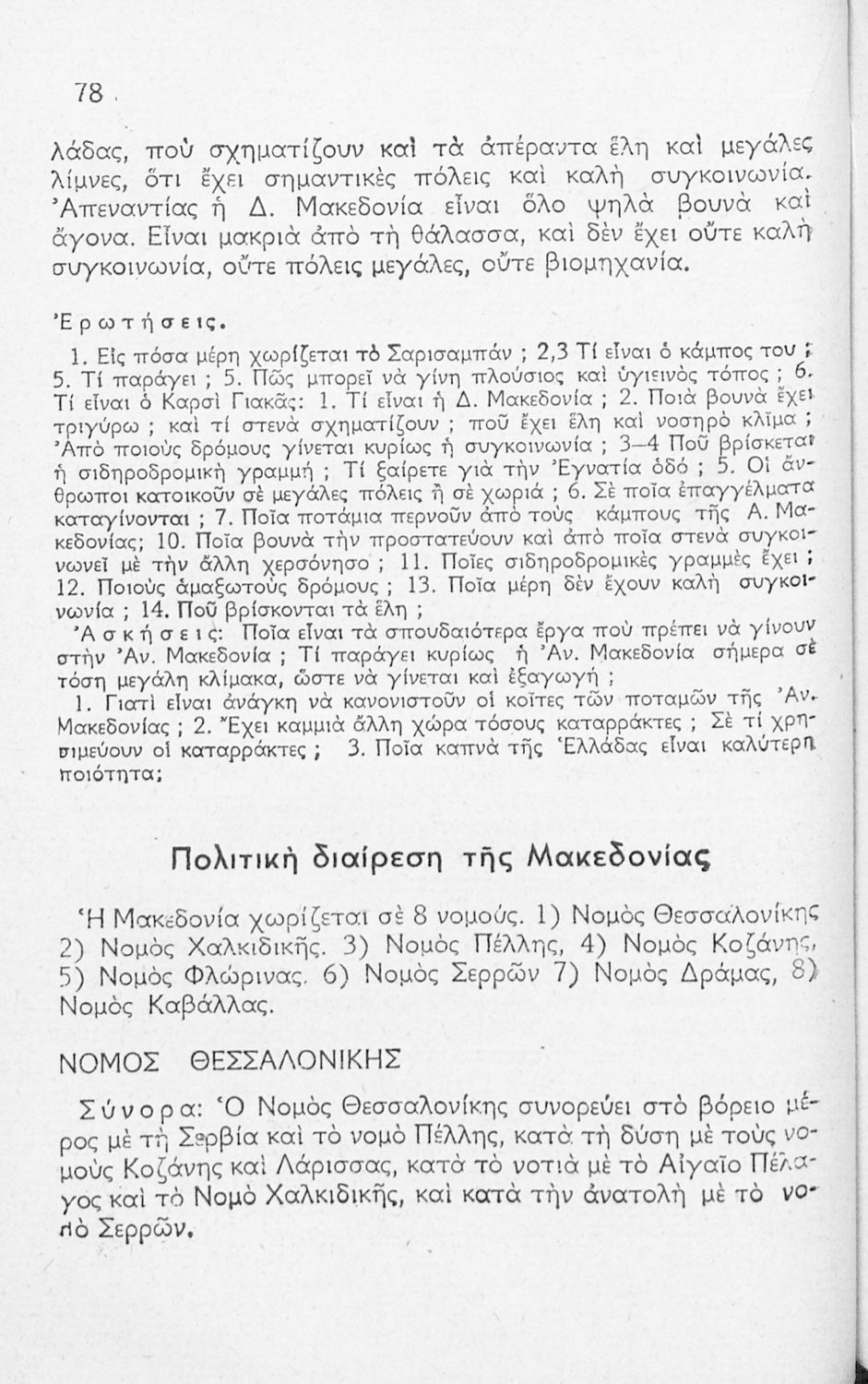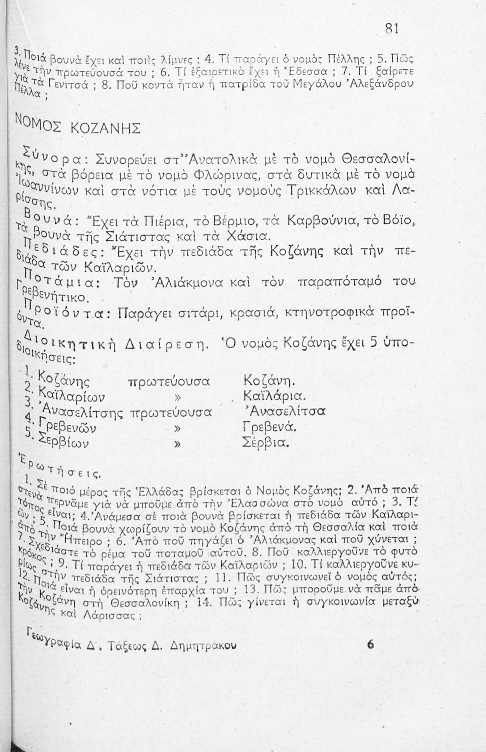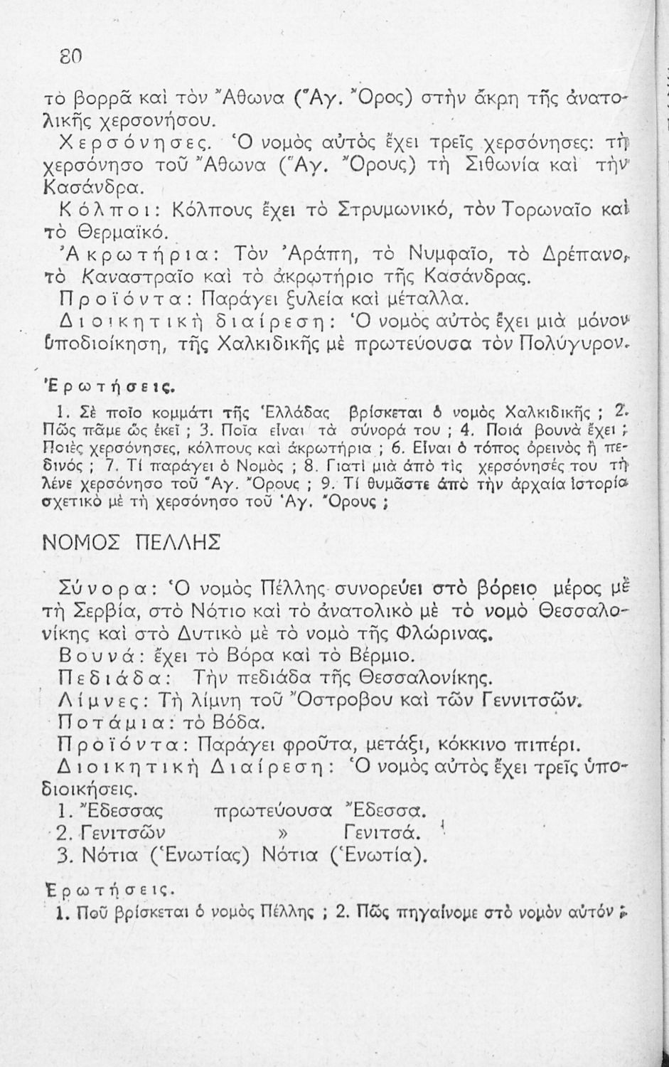 Μαθητικό βοήθημα Γεωγραφίας Γ΄ και Δ΄ Δημοτικού που αποτελεί μια γενική επισκόπηση της Ελλάδας ανά διαμέρισμα και νομό. Περιέχει και στατιστικούς πίνακες.