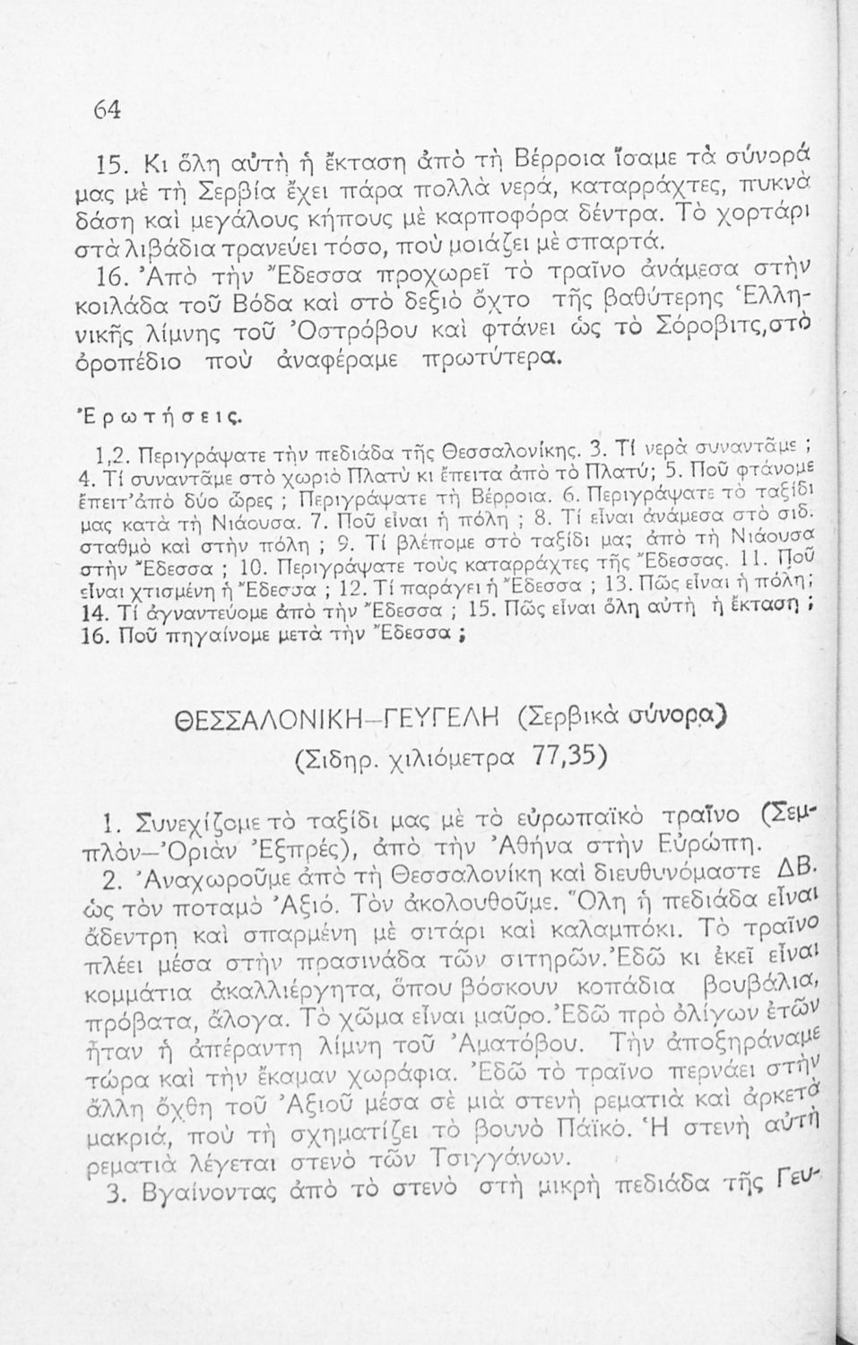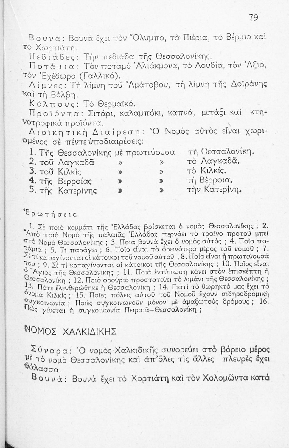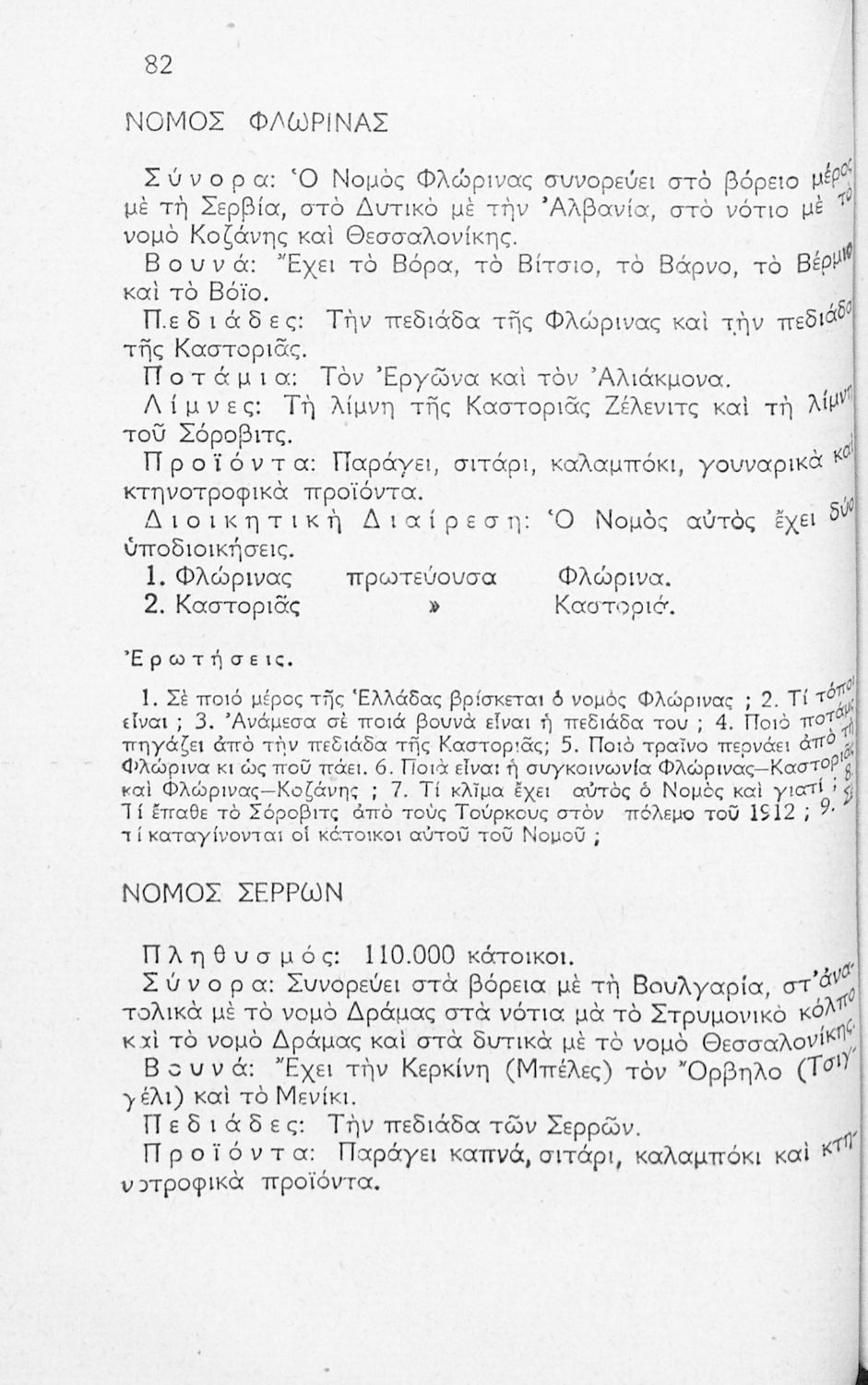 Μαθητικό βοήθημα Γεωγραφίας Γ΄ και Δ΄ Δημοτικού που αποτελεί μια γενική επισκόπηση της Ελλάδας ανά διαμέρισμα και νομό. Περιέχει και στατιστικούς πίνακες.