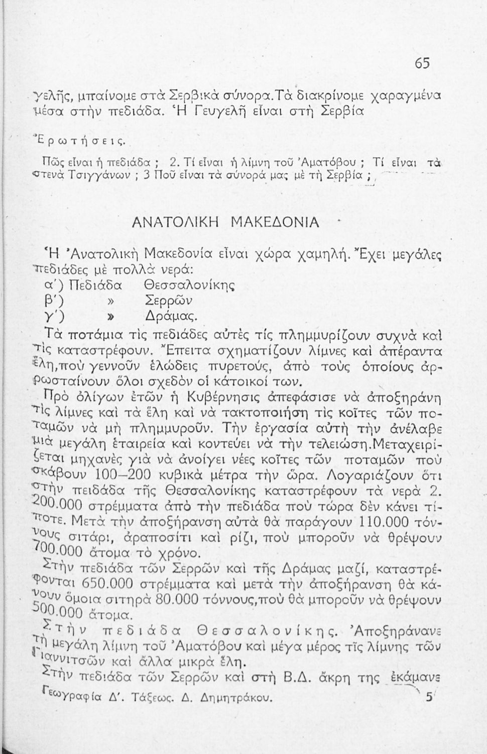Κωδικός αναγνώρισης: 02-01351 Τίτλος: Γεωγραφία για την Γ΄ και Δ΄ τάξη του Δημοτικού Σχολείου Συγγραφέας: Δημήτριος Δημητράκος Μέγεθος και υπόστρωμα: Μαθητικό βοήθημα, μαλακό εξώφυλλο, 196 σελίδες. Εικόνες (ασπρόμαυρες), σκίτσα (ασπρόμαυρα), χάρτες (ασπρόμαυροι). |