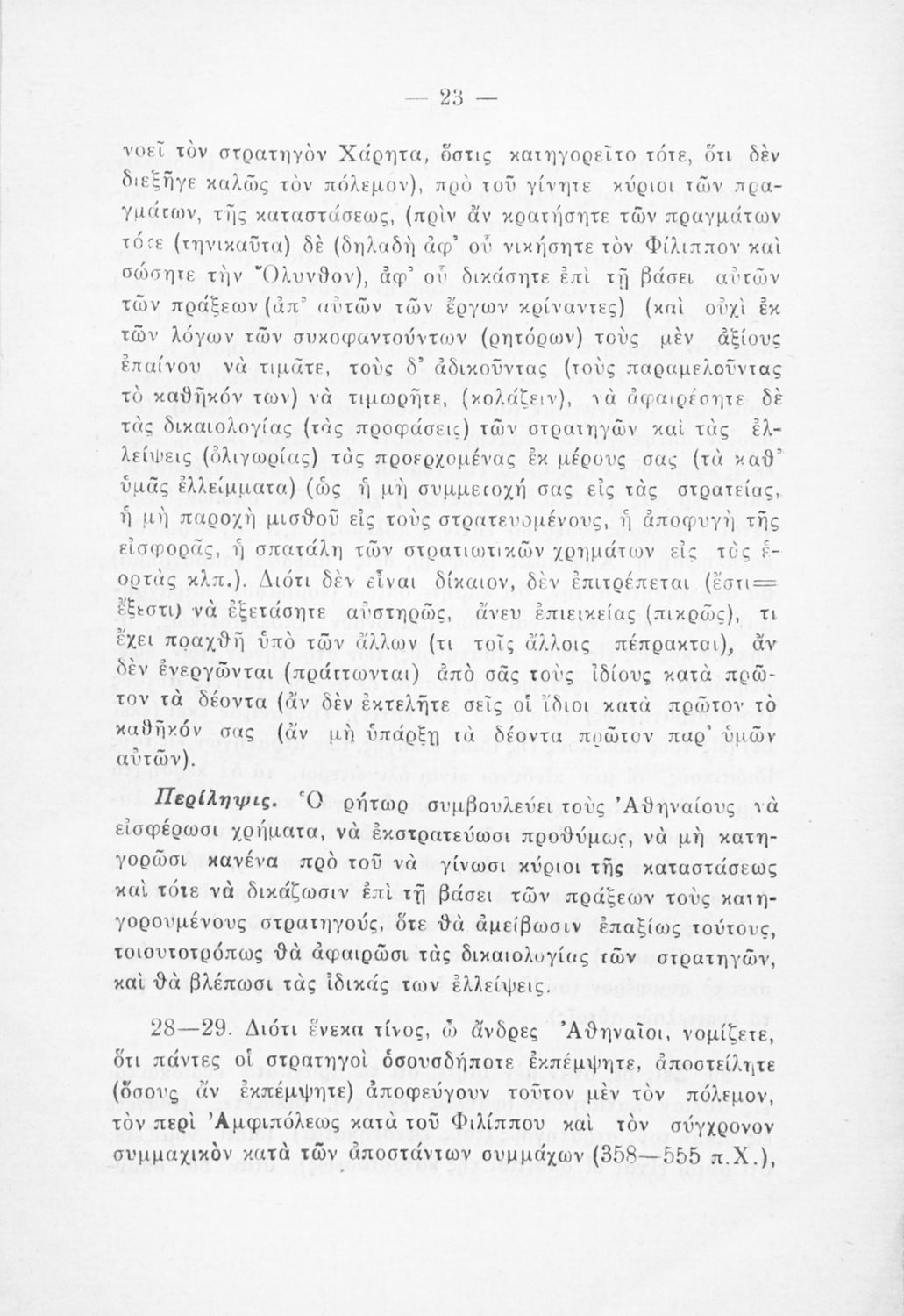 Μετάφρασις του Β΄ Ολυνθιακού λόγου του Δημοσθένους, κατά συντακτικήν σειράν, προς χρήσιν των μαθητών της Δ΄ τάξεως των Γυμνασίων και άλλων ομοιόβαθμων σχολείων αμφοτέρων των φύλων