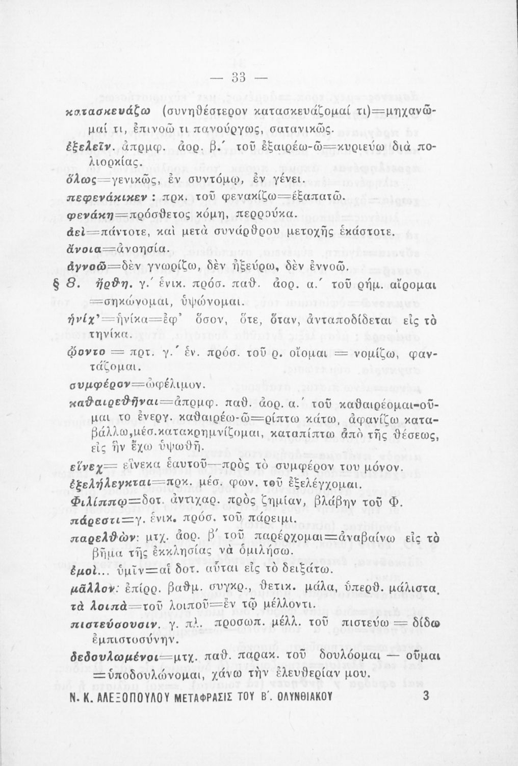 Τίτλος: Μετάφρασις του Β΄ Ολυνθιακού λόγου του Δημοσθένους, κατά συντακτικήν σειράν, προς χρήσιν των μαθητών της Δ΄ τάξεως των Γυμνασίων και άλλων ομοιόβαθμων σχολείων αμφοτέρων των φύλων