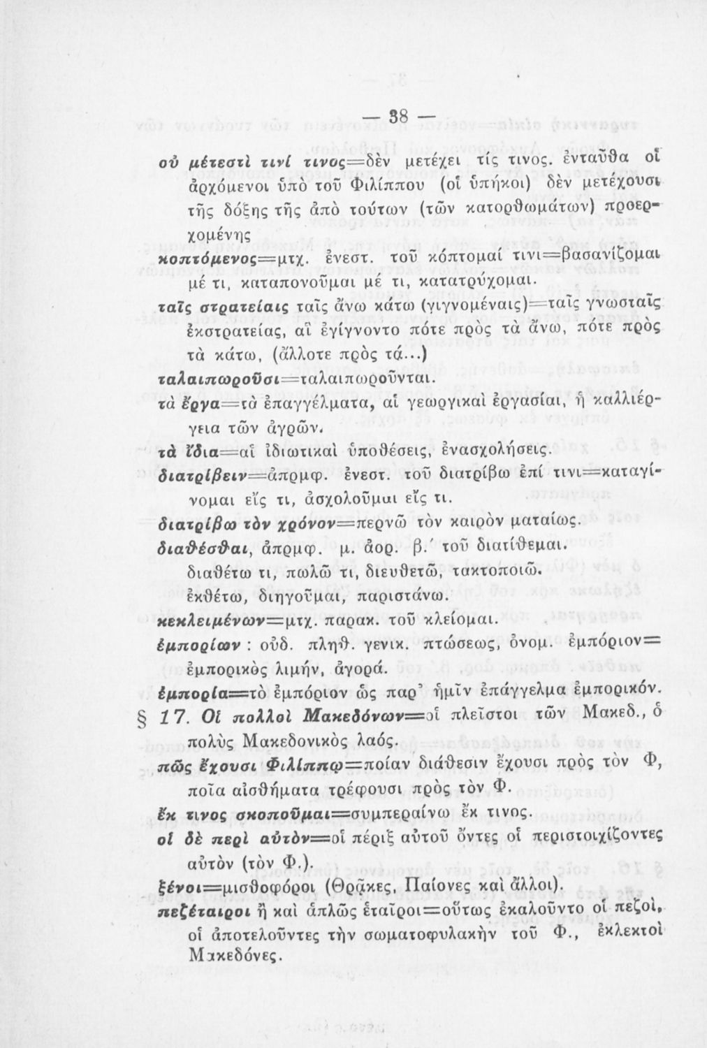 Σχολικό εγχειρίδιο για την Δ΄ Γυμνασίου για το μάθημα των Αρχαίων Ελληνικών. Το εγχειρίδιο περιλαμβάνει την σχολική μετάφραση γραμμένη σε καθαρεύουσα γλώσσα του ρητορικού λόγου του Δημοσθένη, "Κατά Φιλίππου Β΄